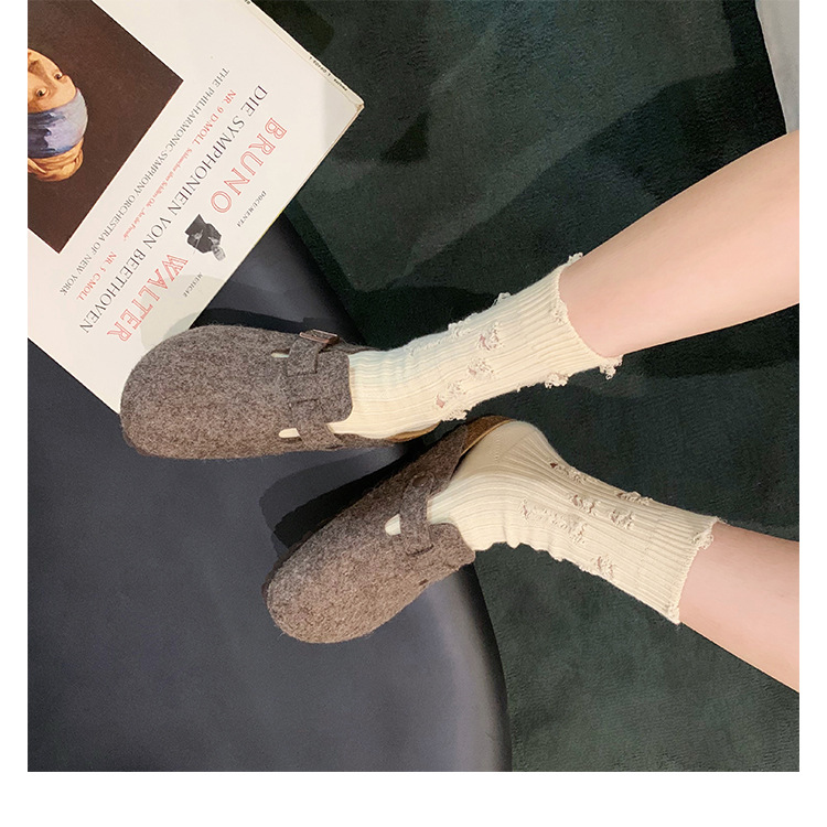 재고 포도 엄마 펠트 플랫 큰 라운드 헤드 마오 마오 싱글 레이어 신발 캐주얼 Baotou 하프 토우 여성 아웃도어 웨어 가을과 겨울