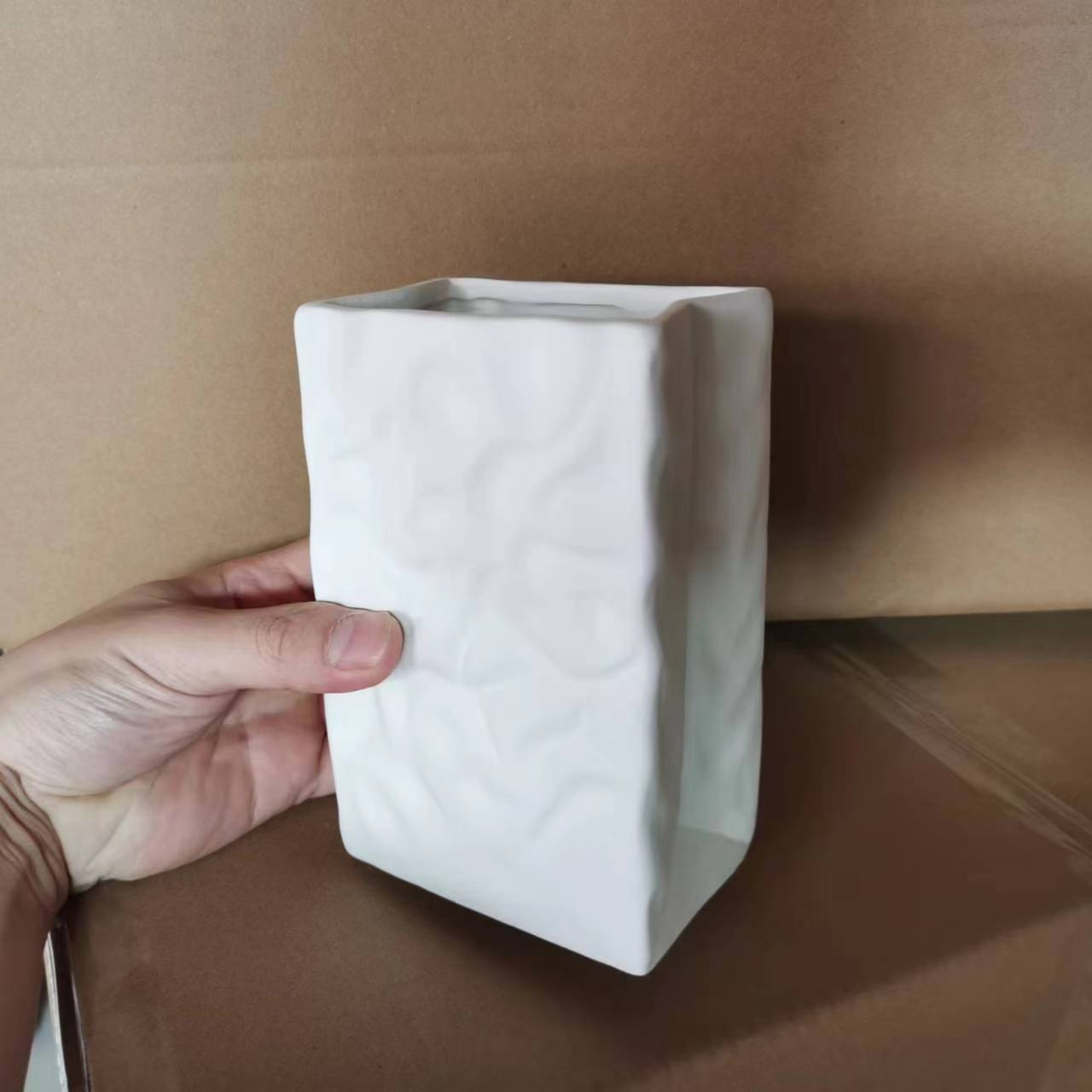 花瓶为素胚工艺,白色,表面粗糙,不可装水