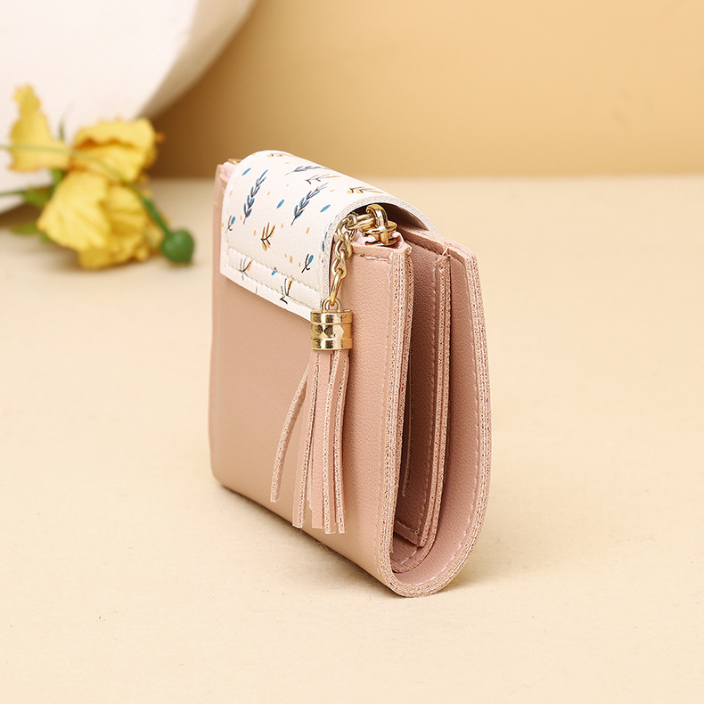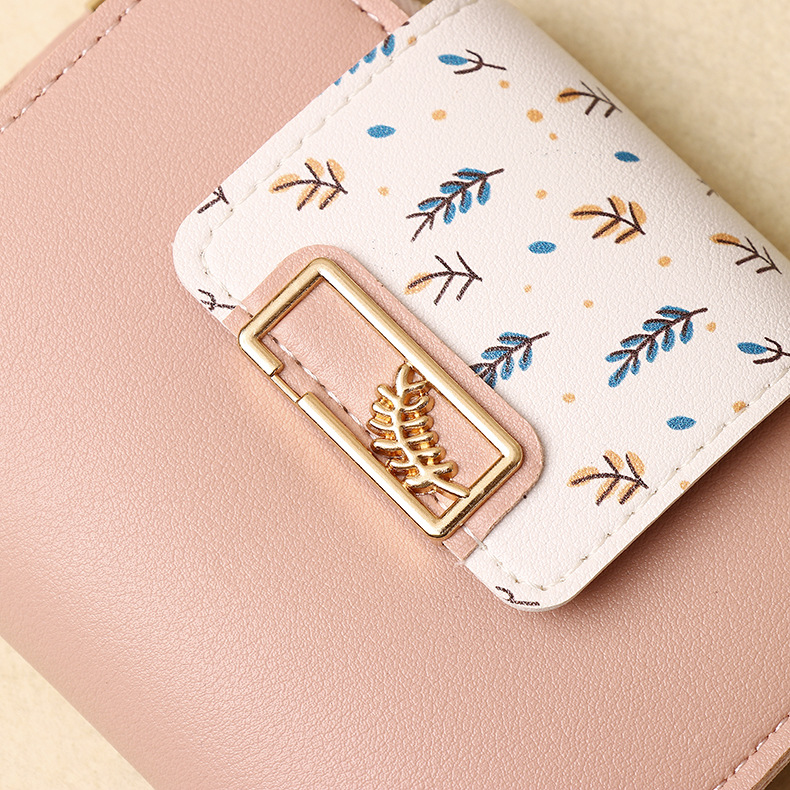 지갑 여성용 고급 센스 작은 잎 카드 가방 새로운 한국 핸드백 술 짧은 지갑 동전 지갑 여성용스토어 가기