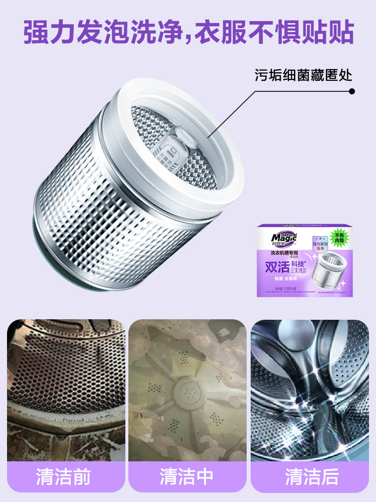 미아오 가정용 세탁기 통 전용 세척제 125g*4 세탁기 드럼/롤러 자동 세탁기 통 청소용
