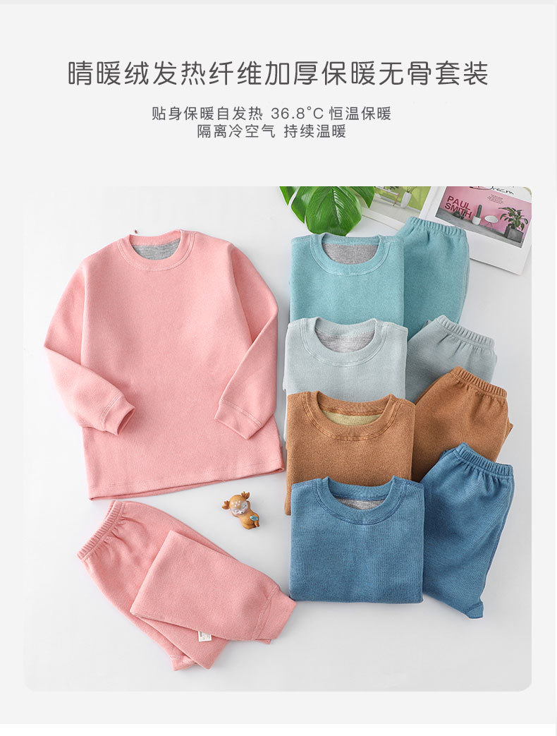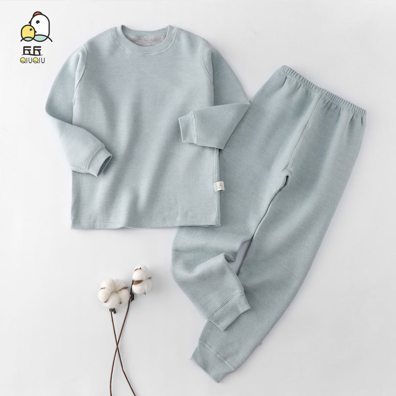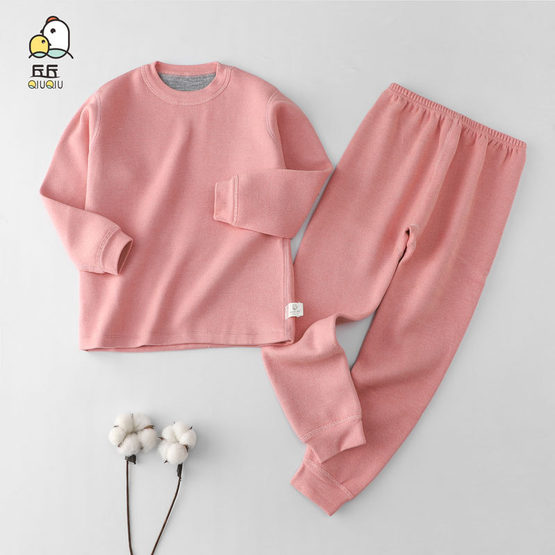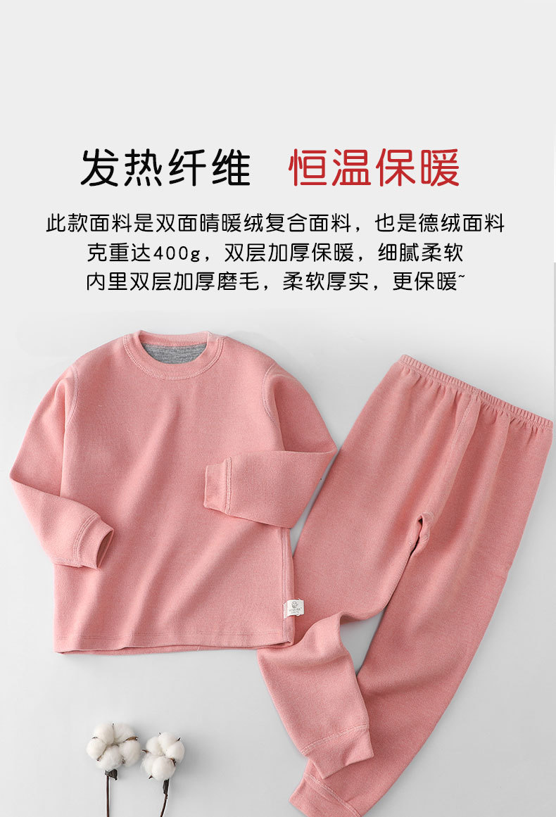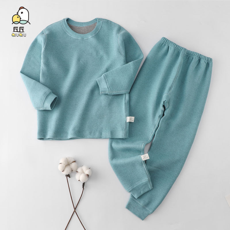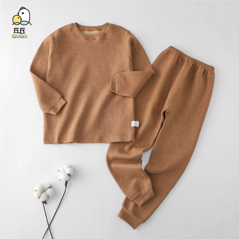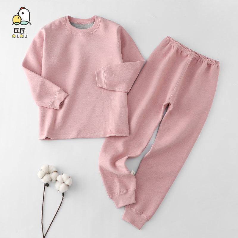 Qiuqiu 가을과 겨울 더블 레이어 합성 써니 따뜻한 벨벳 따뜻한 잠옷 남성과 여성 두꺼운 벨벳 따뜻한 속옷 세트 중간 및 큰 어린이