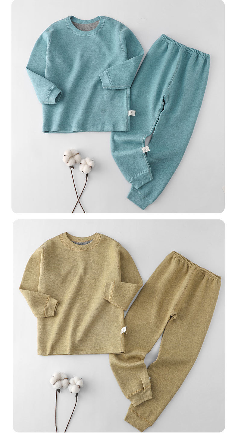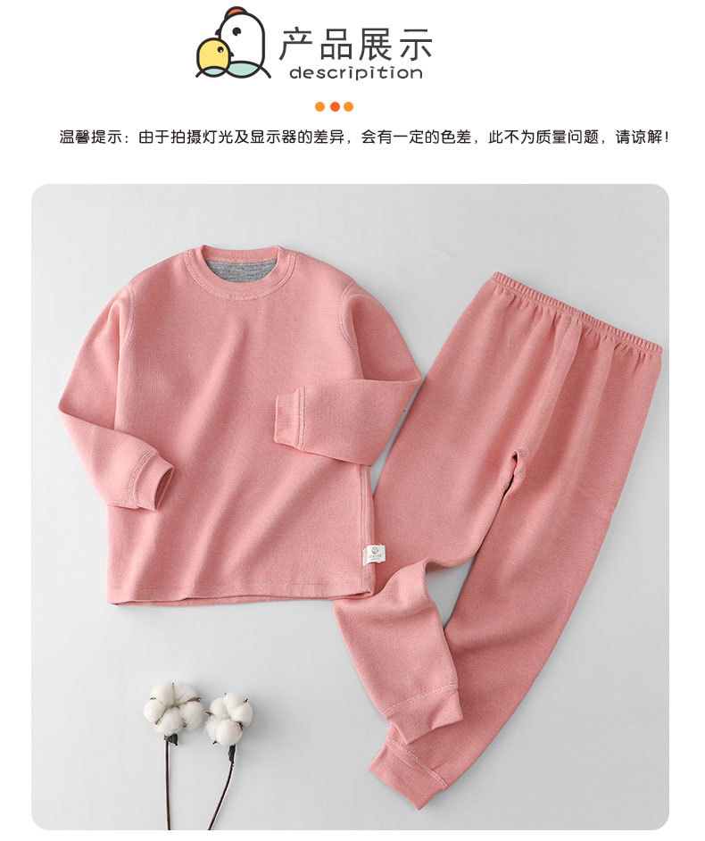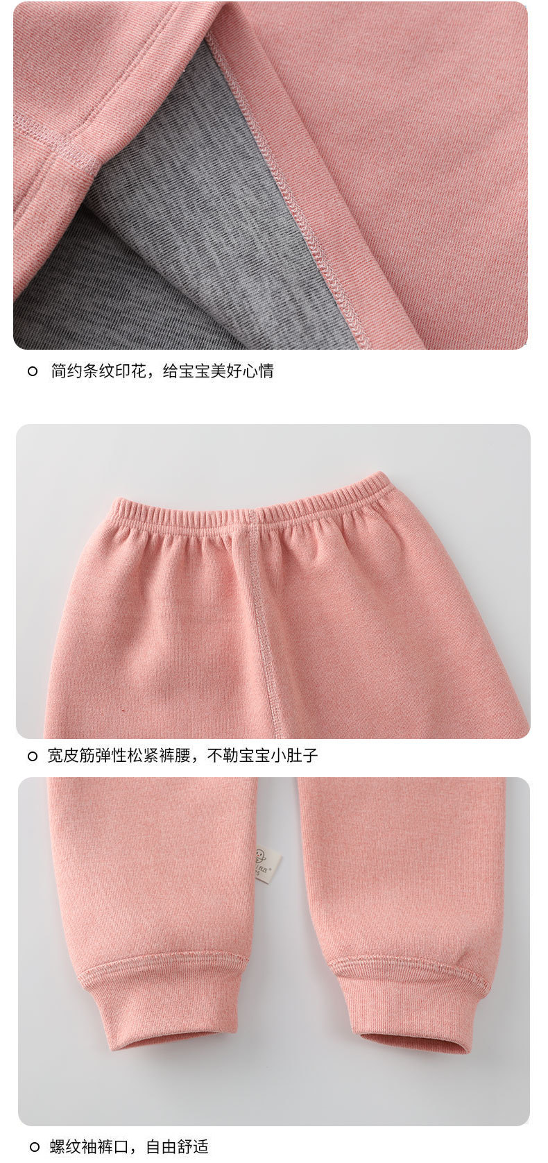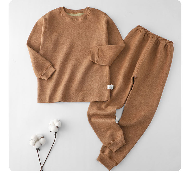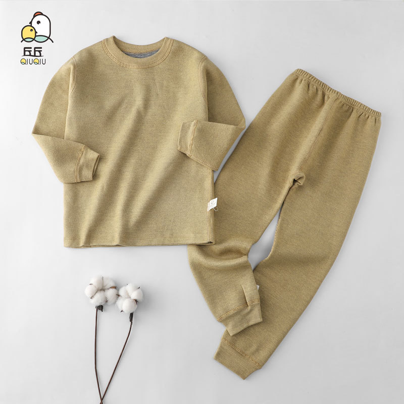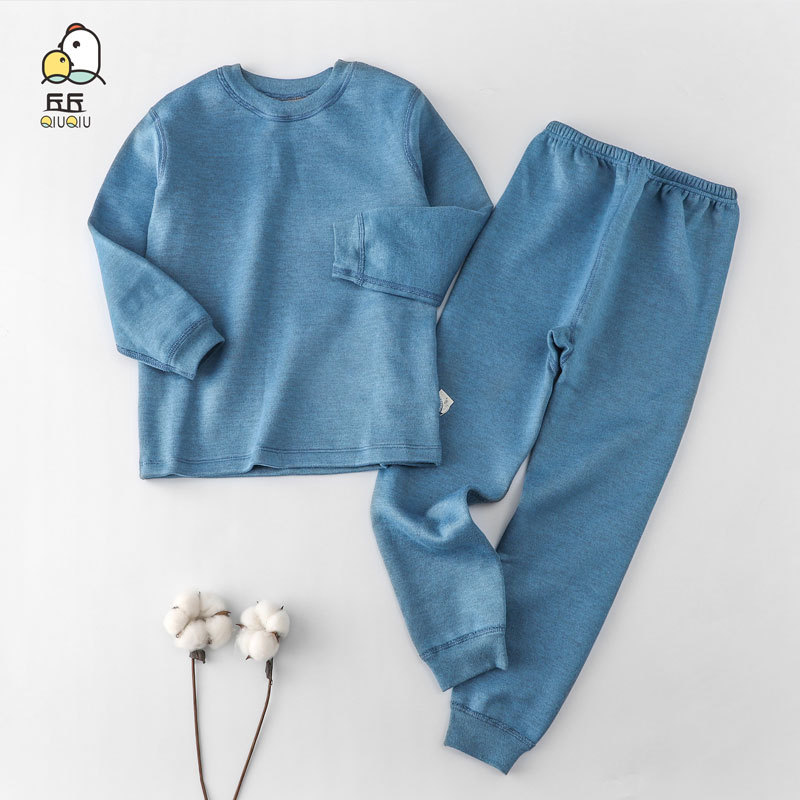 Qiuqiu 가을과 겨울 더블 레이어 합성 써니 따뜻한 벨벳 따뜻한 잠옷 남성과 여성 두꺼운 벨벳 따뜻한 속옷 세트 중간 및 큰 어린이