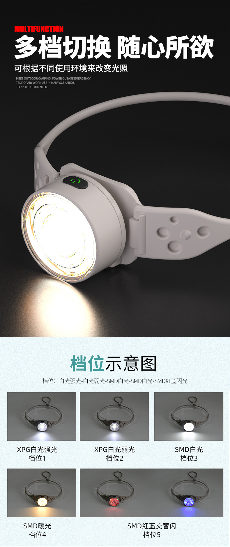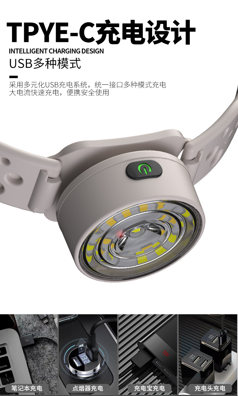 새로운 야외 실리콘 멀티 광원 강한 조명 충전 헤드 마운트 조명 휴대용 야간 러닝 투광 조명 작업 램프 헤드 램프