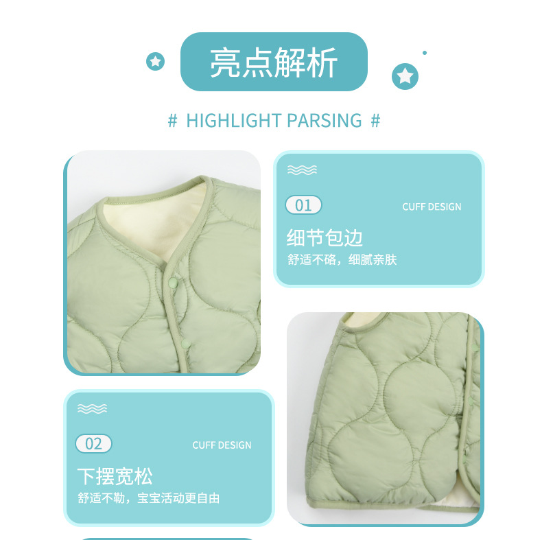 아기 조끼 봄 두꺼운 따뜻한 조끼 클래스 퀼트 아기 가을 벨벳 외부 허리 코트 조끼