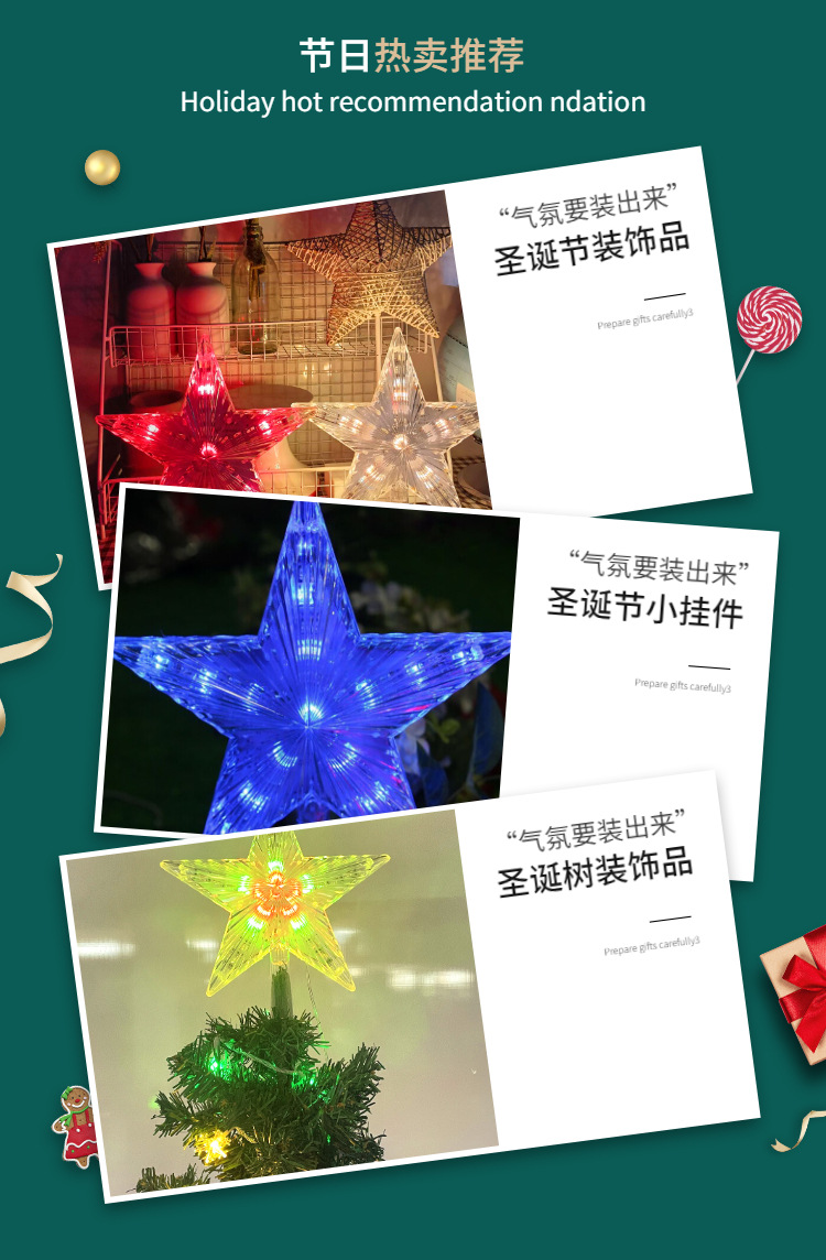 크리스마스 트리 장식 트리 탑 스타 반짝이 LED 다섯개 별 램프 크리스마스 장식 램프 20cm 별 소품
