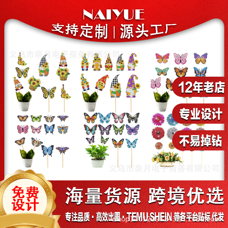 다이아몬드 그림 장식 스틱 화분 데스크탑 식물 장식 다이아몬드 스티커 DIY 수제 정원 더미 스티커 다이아몬드 돌 그림스토어 가기