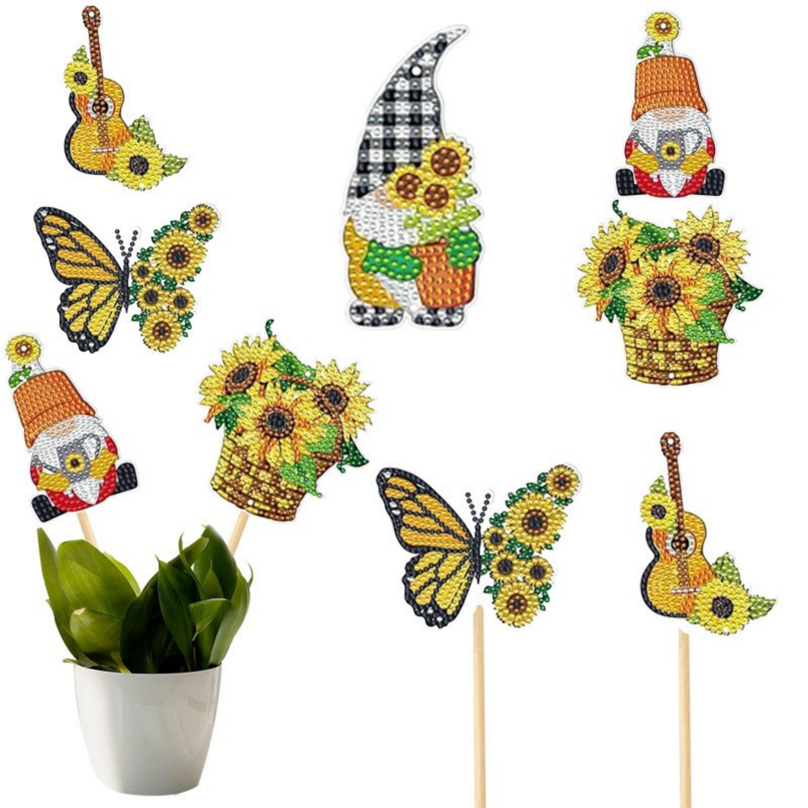 다이아몬드 그림 장식 스틱 화분 데스크탑 식물 장식 다이아몬드 스티커 DIY 수제 정원 더미 스티커 다이아몬드 돌 그림