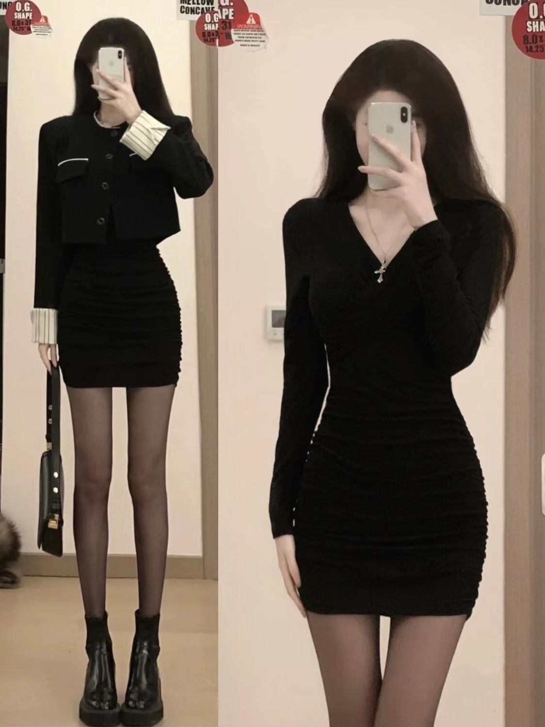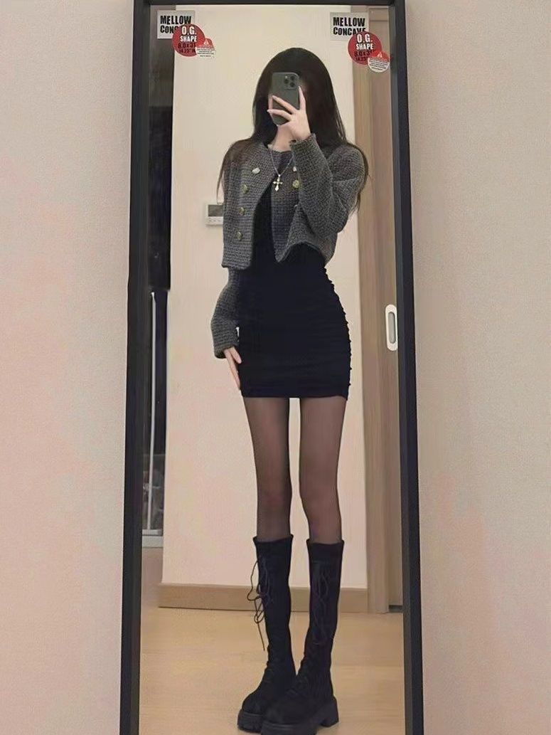 프랑스 순수한 욕망 니트 내부 원피스 여자의 2023 가을과 겨울 새로운 스타일 새엄마 시스 스커트 꽉 뜨거운 소녀 스커트스토어 가기