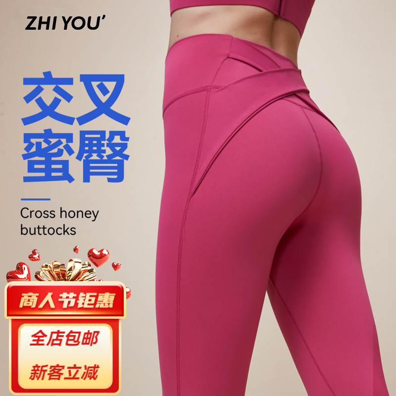 새로운 크로스 엉덩이 꽉 허리 업그레이드 하이 웨이스트 복숭아 스포츠 요가 바지 피트니스 실행 당황 라인 바지