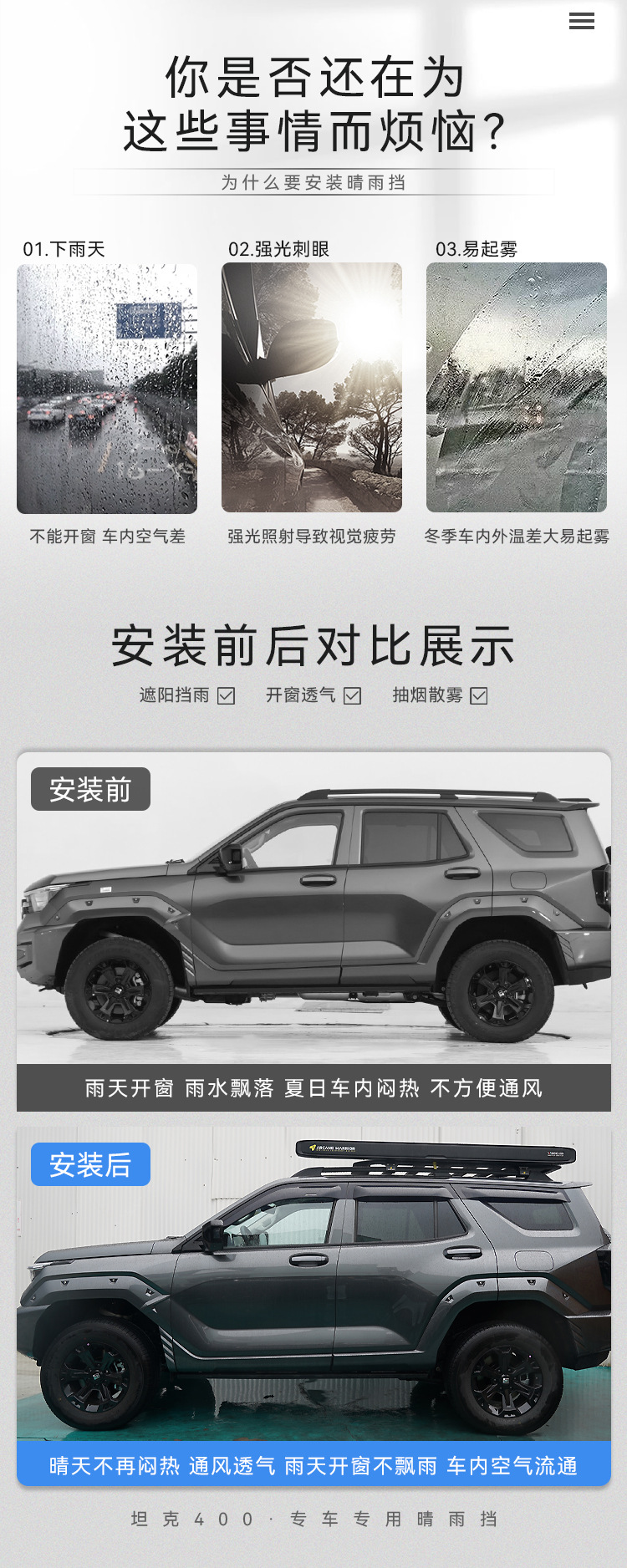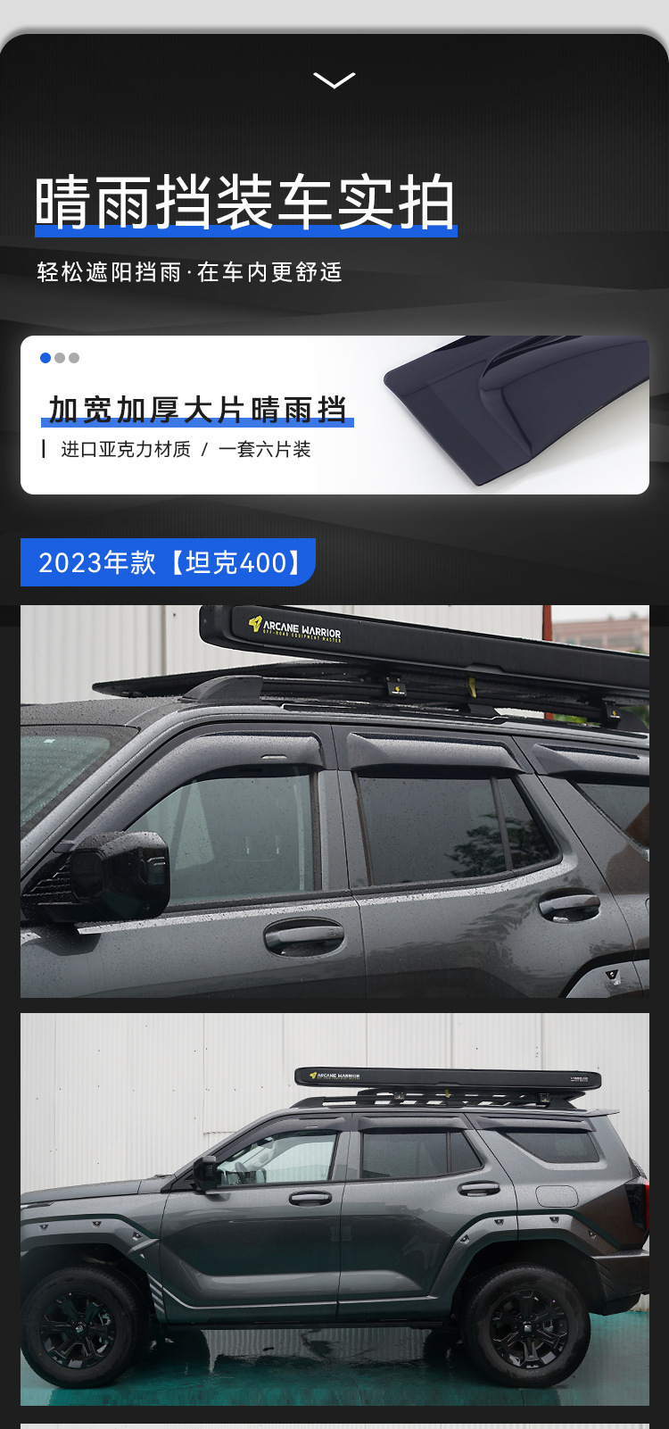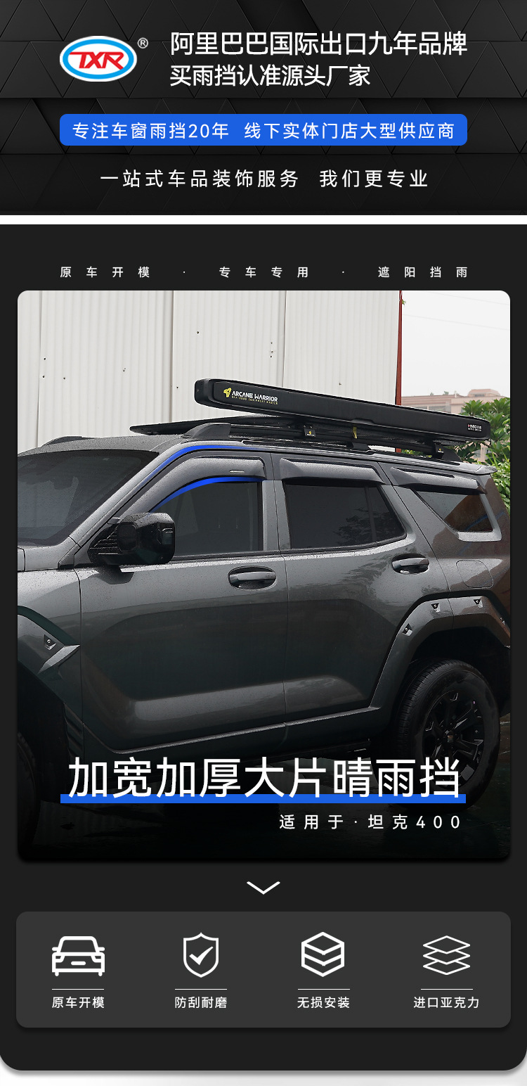 Texinrui는 탱크 400 자동차 레인 실드 자동차 창 비 눈썹 수정 레인 실드 외부 액세서리에 적합합니다스토어 가기