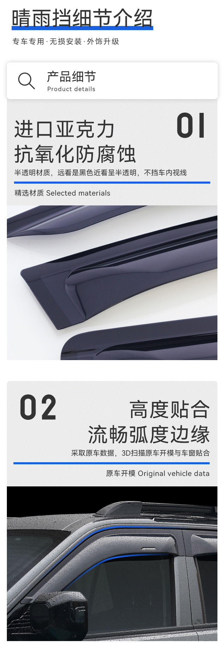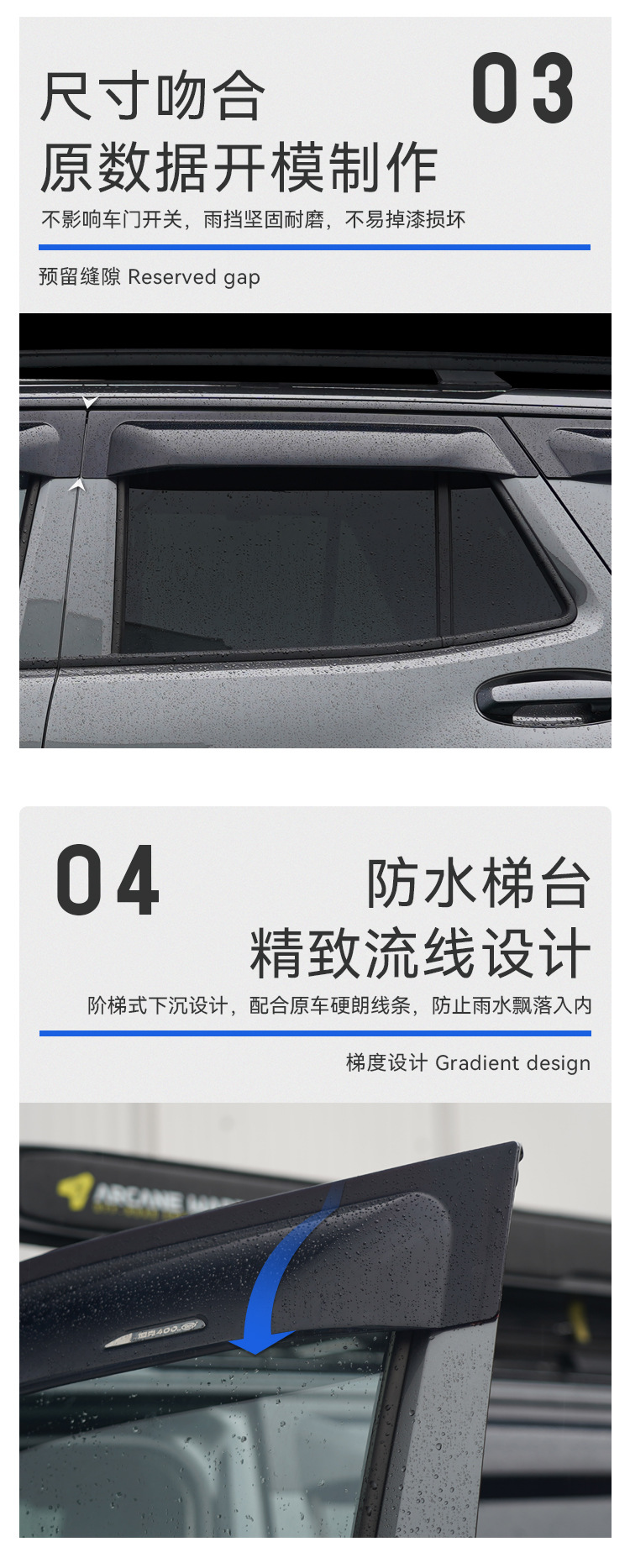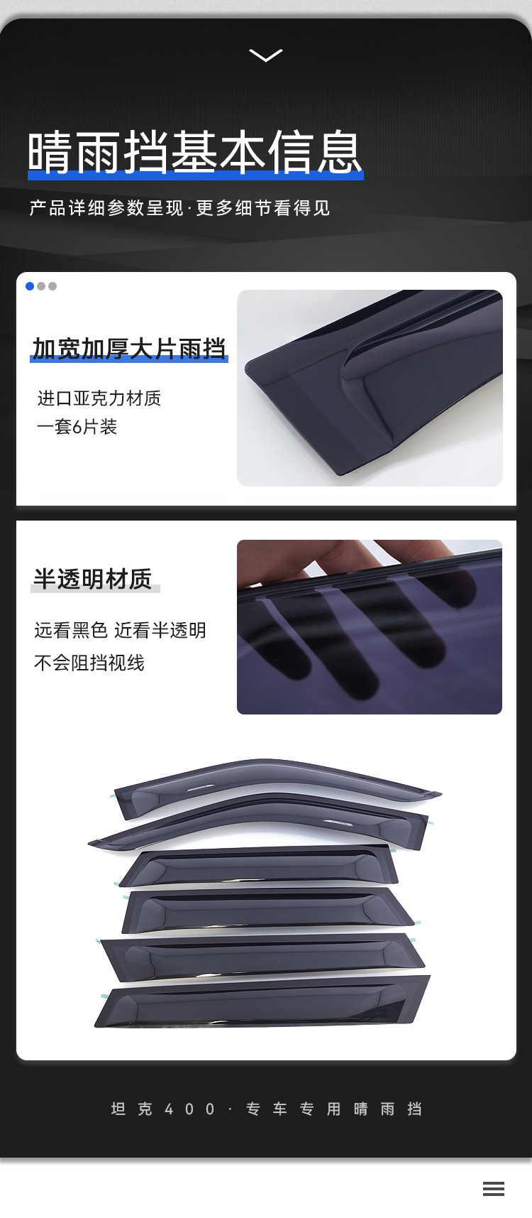 Texinrui는 탱크 400 자동차 레인 실드 자동차 창 비 눈썹 수정 레인 실드 외부 액세서리에 적합합니다스토어 가기
