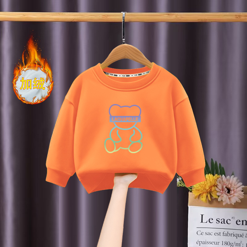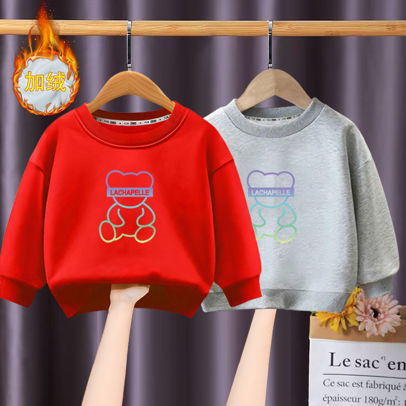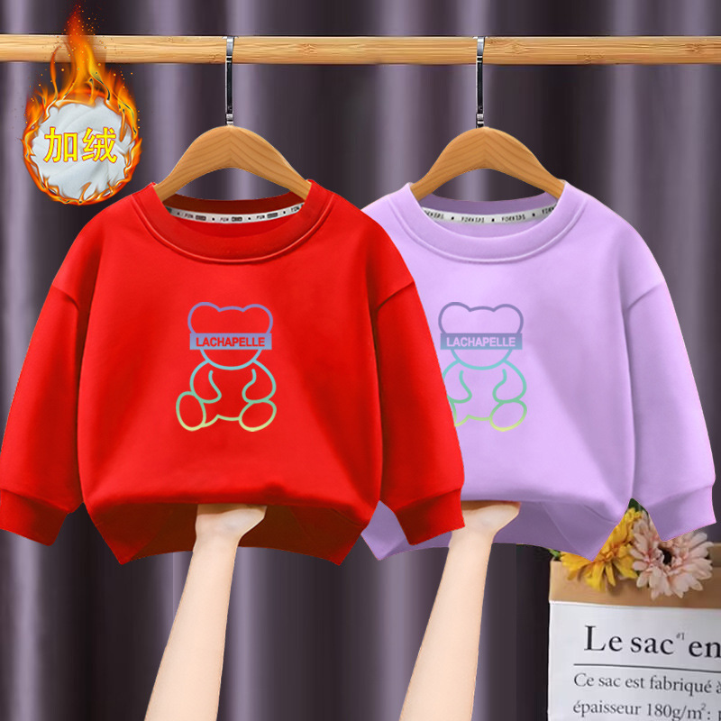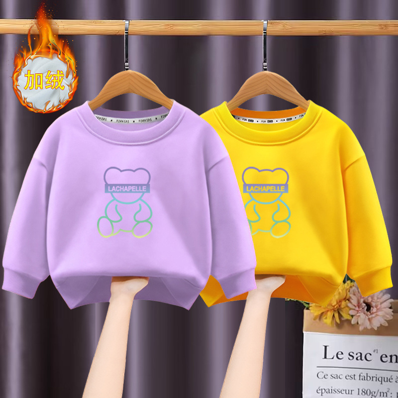 어린이 의류 남학생과 소녀의 가을과 겨울 기모 둥근 목 스웨터 2023 새로운 중형 및 대형 어린이의 느슨한 아동용 탑 봄과 가을 의류스토어 가기