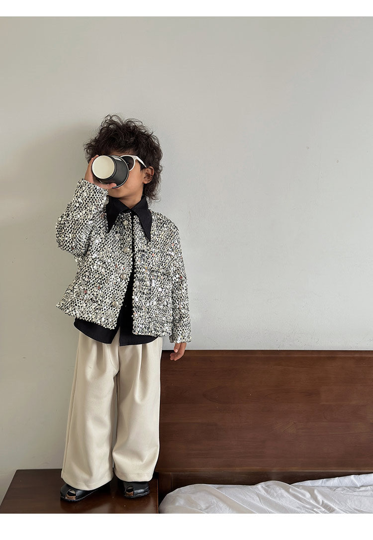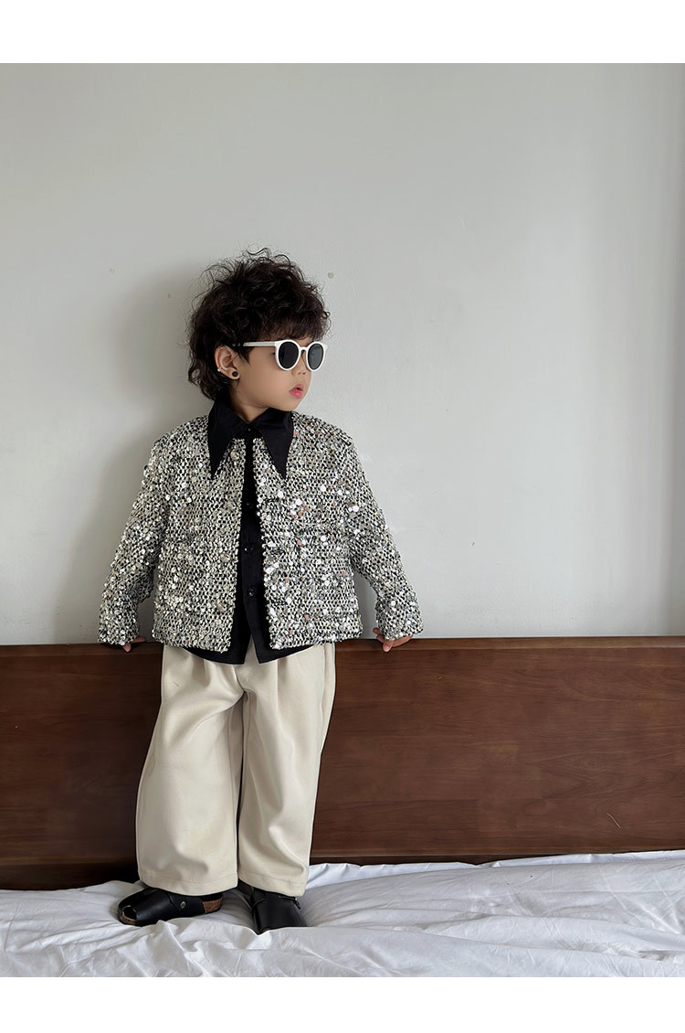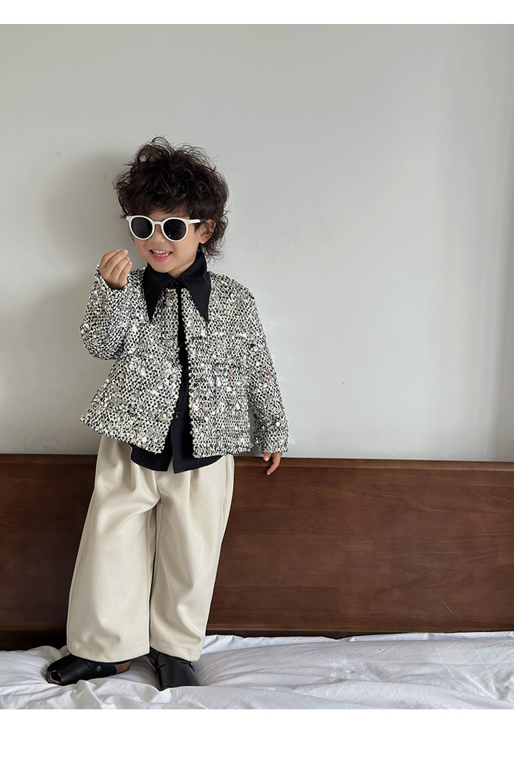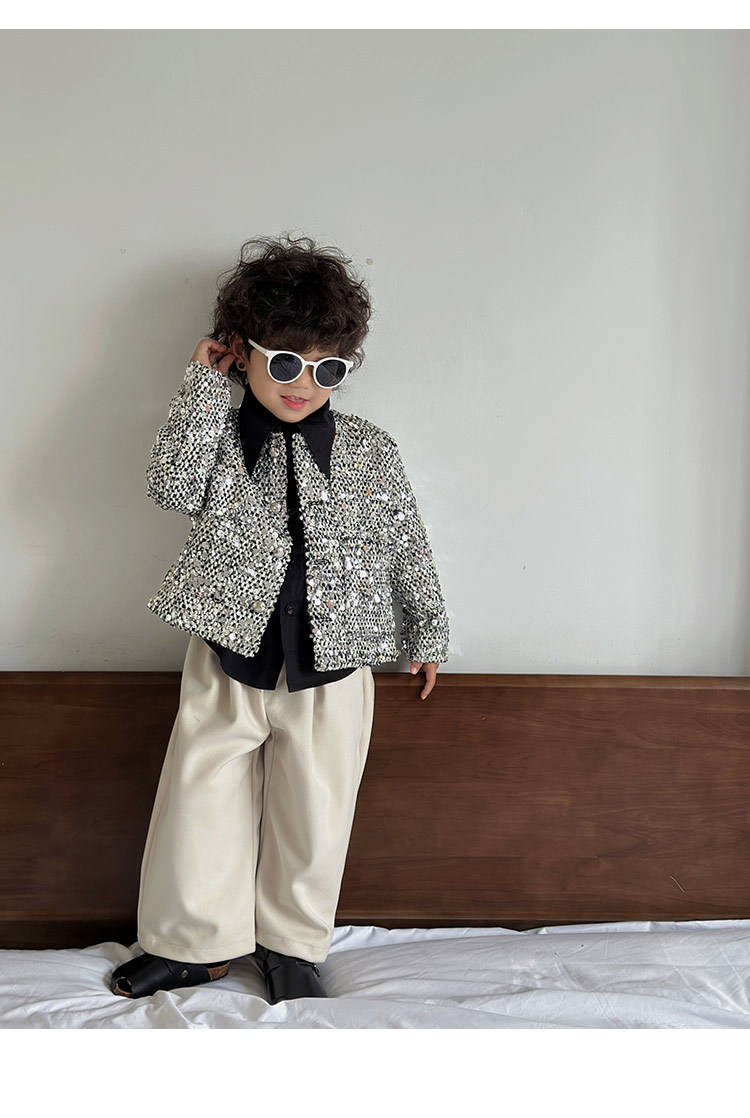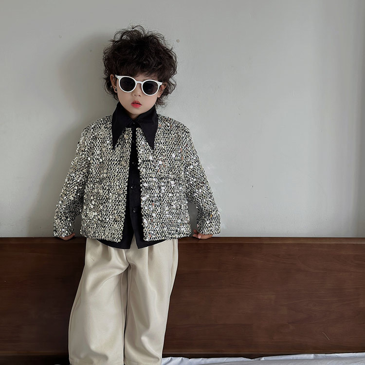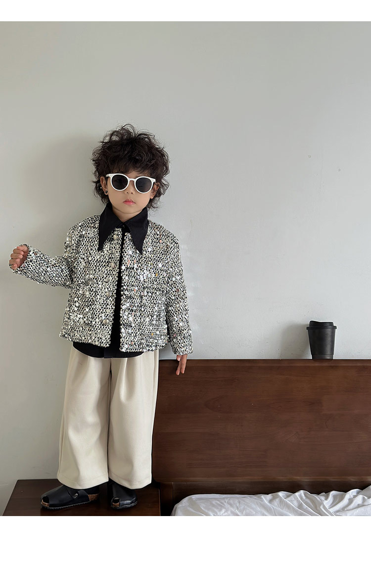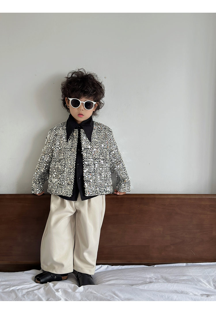어린이 스팽글 코트 2023 가을 새 소년 작은 향 크루 넥 코트 한국 아동복 머리카락 세대