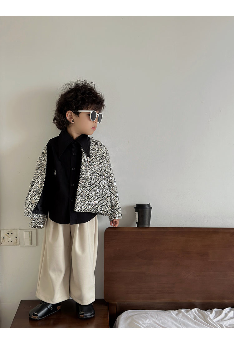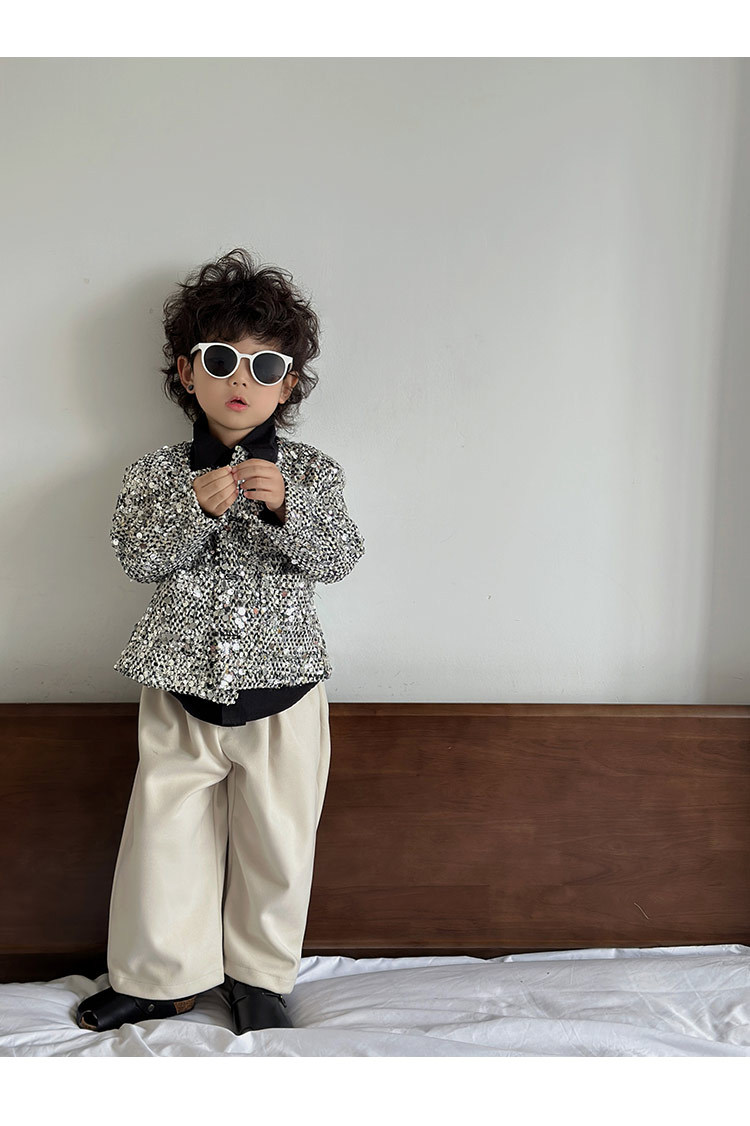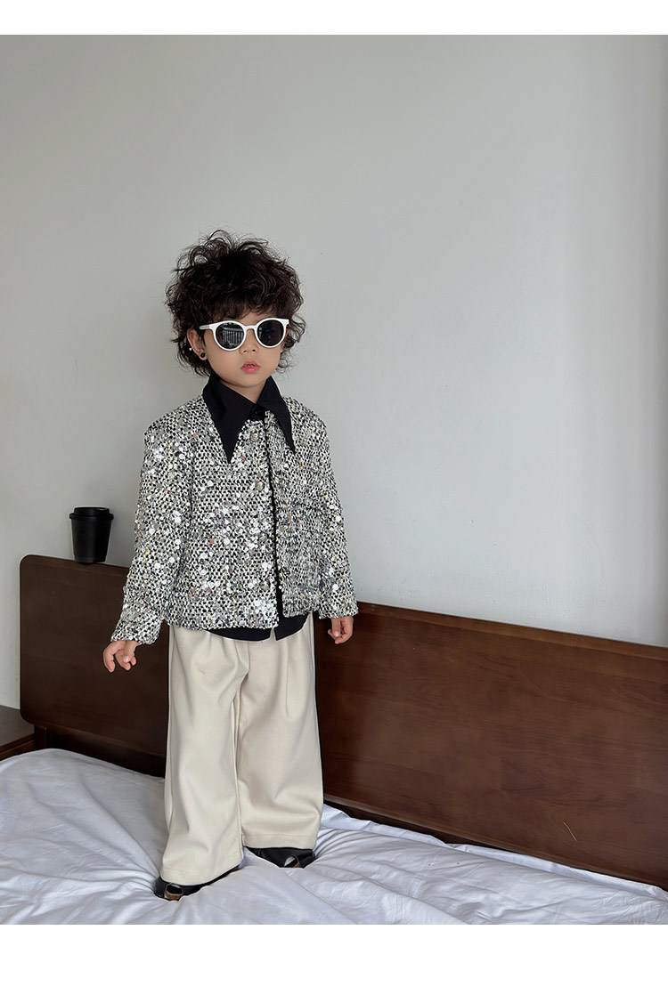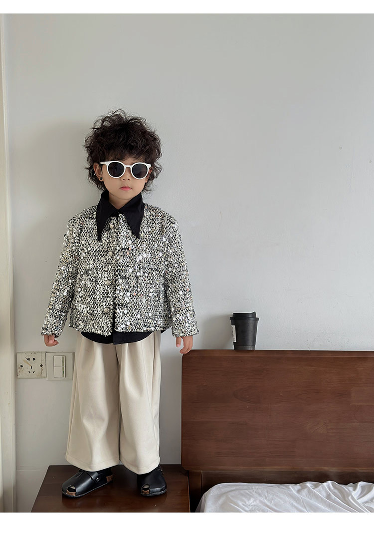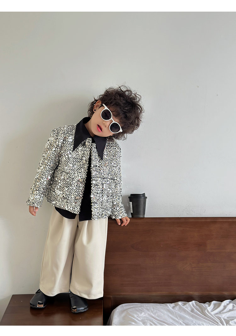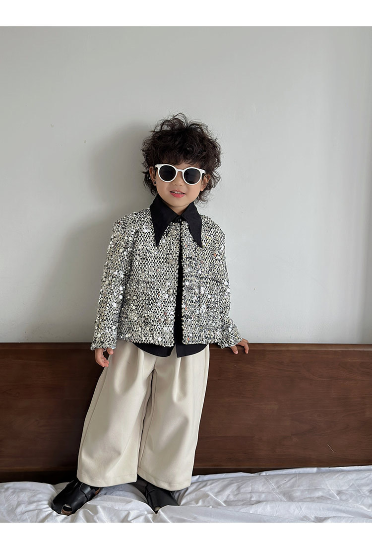 어린이 스팽글 코트 2023 가을 새 소년 작은 향 크루 넥 코트 한국 아동복 머리카락 세대