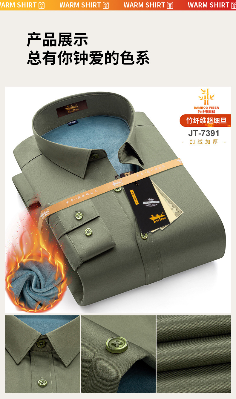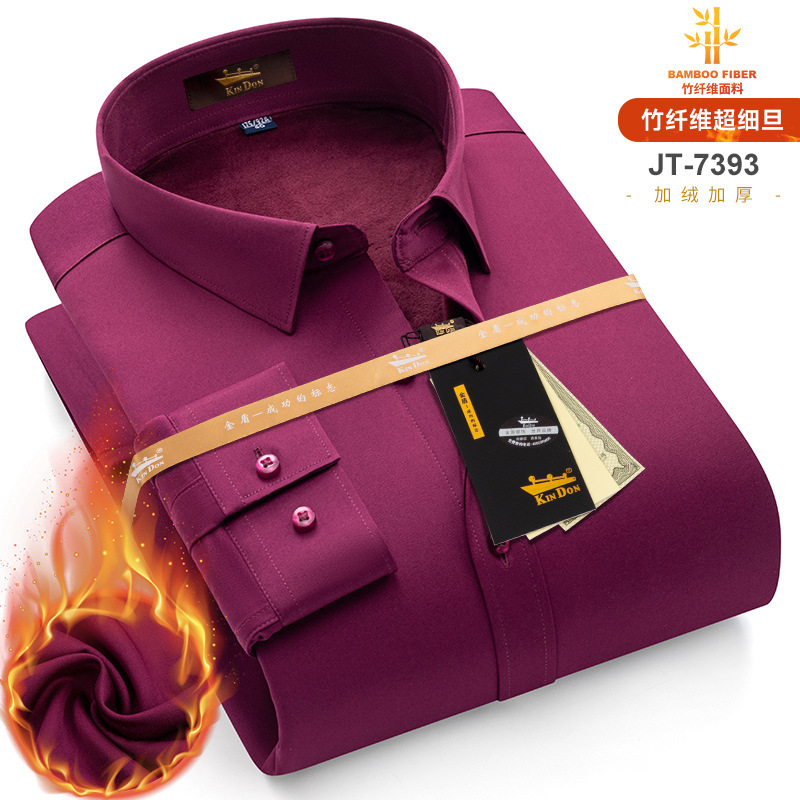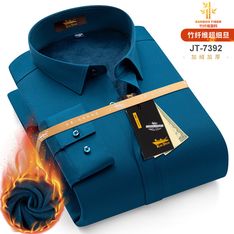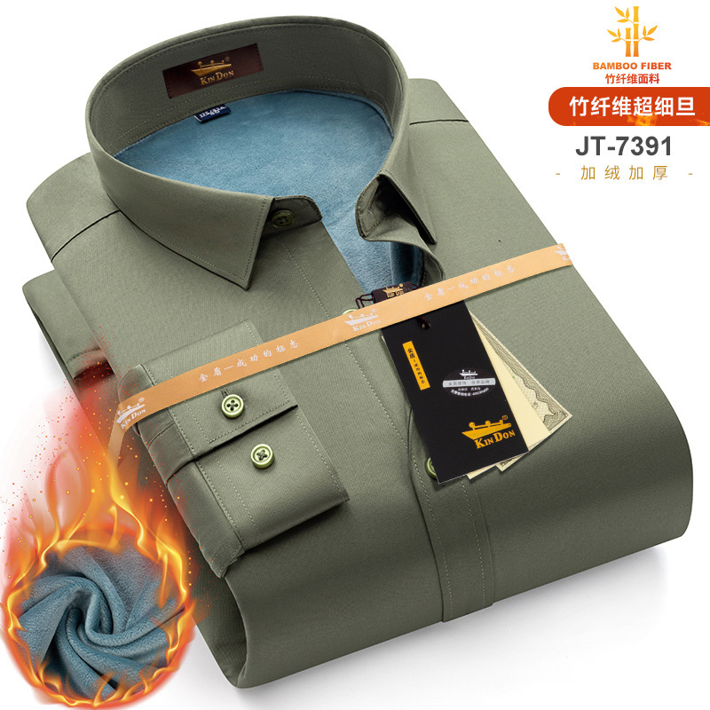 황금 방패 대나무 섬유 셔츠 긴 소매 남자의 겨울 기모 두꺼운 2023 새로운 유행 단색 따뜻한 캐주얼 셔츠스토어 가기