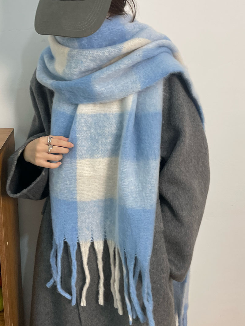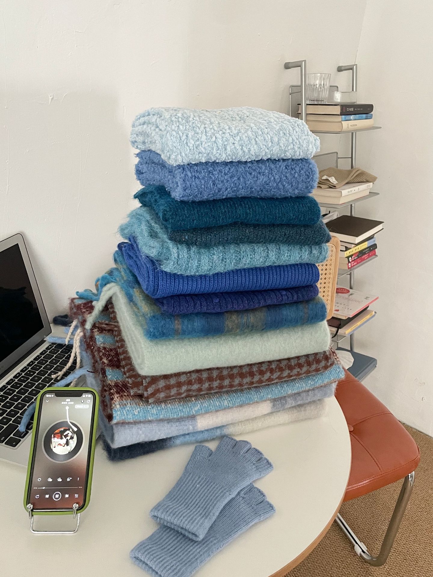 * 크러쉬 아이스 블루 컬렉션 * 원하는 모든 블루스는 수레 국화 블루/클라인 블루 여성용 단색 스카프 (양모 포함)스토어 가기