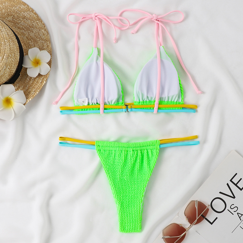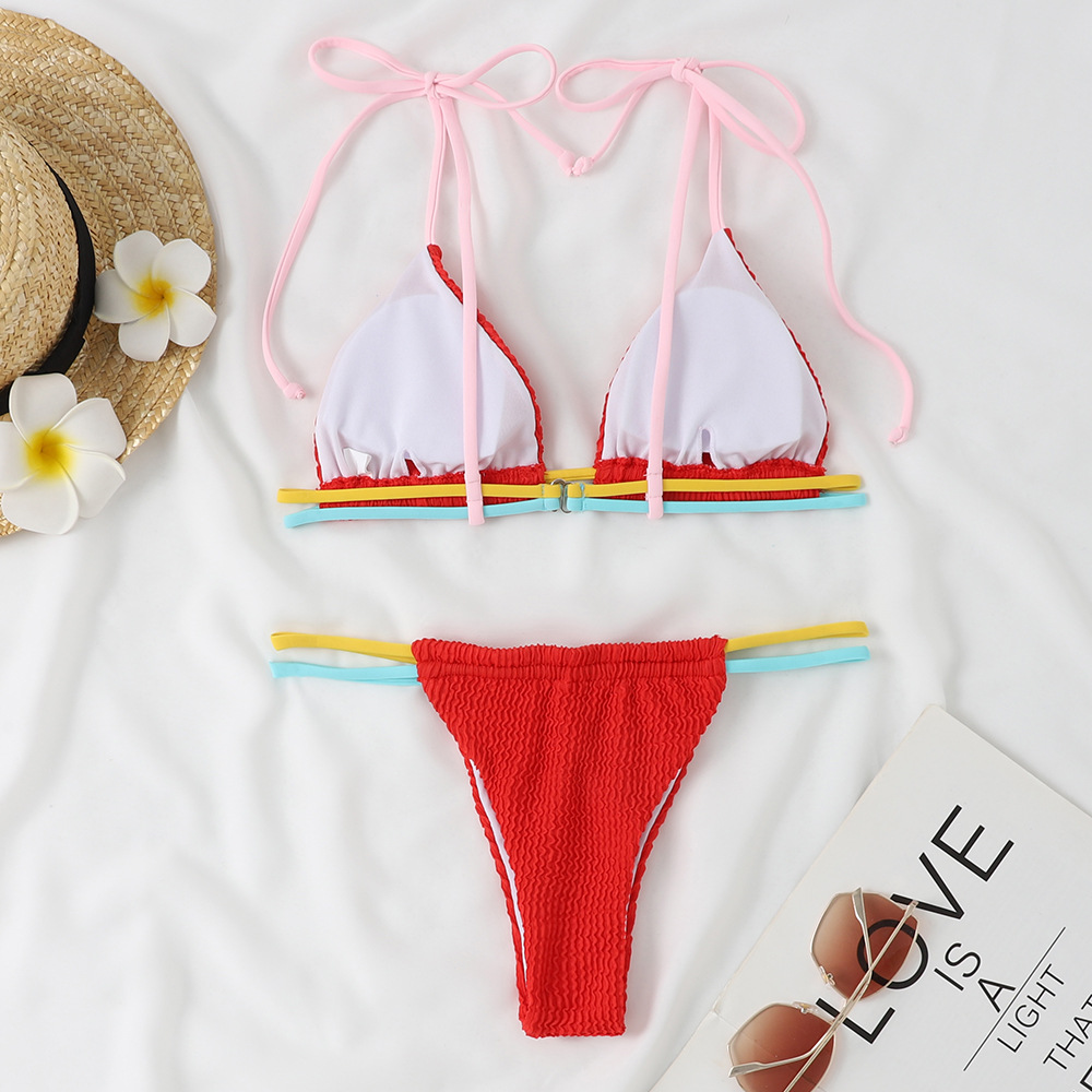 2024 새로운 수영복 대외 무역 유럽과 미국 섹시 컬러 비키니 하이 웨이스트 스플릿 여성용 수영복 비키니스토어 가기