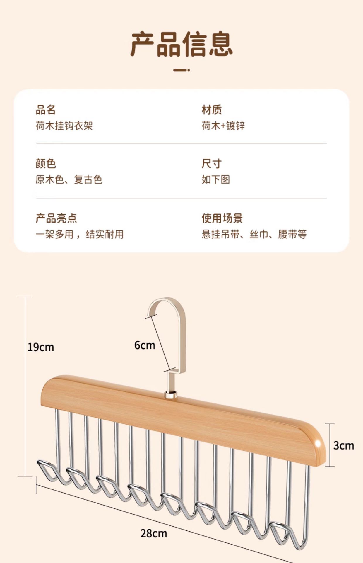 나무 스트랩 걸이 다기능 속옷 조끼 보관 유물 가정용 기숙사 단단한 나무 후크 웨이브 건조 랙