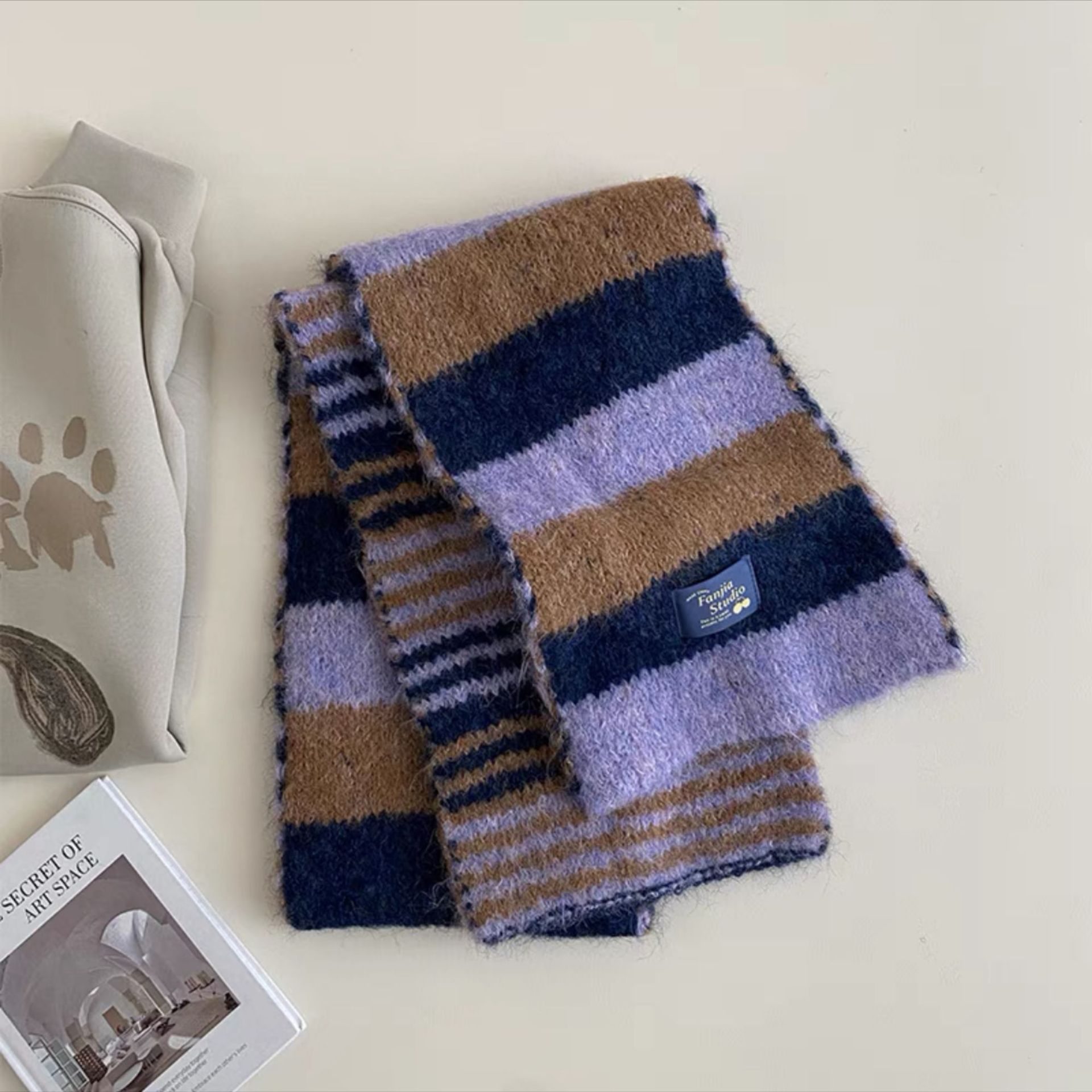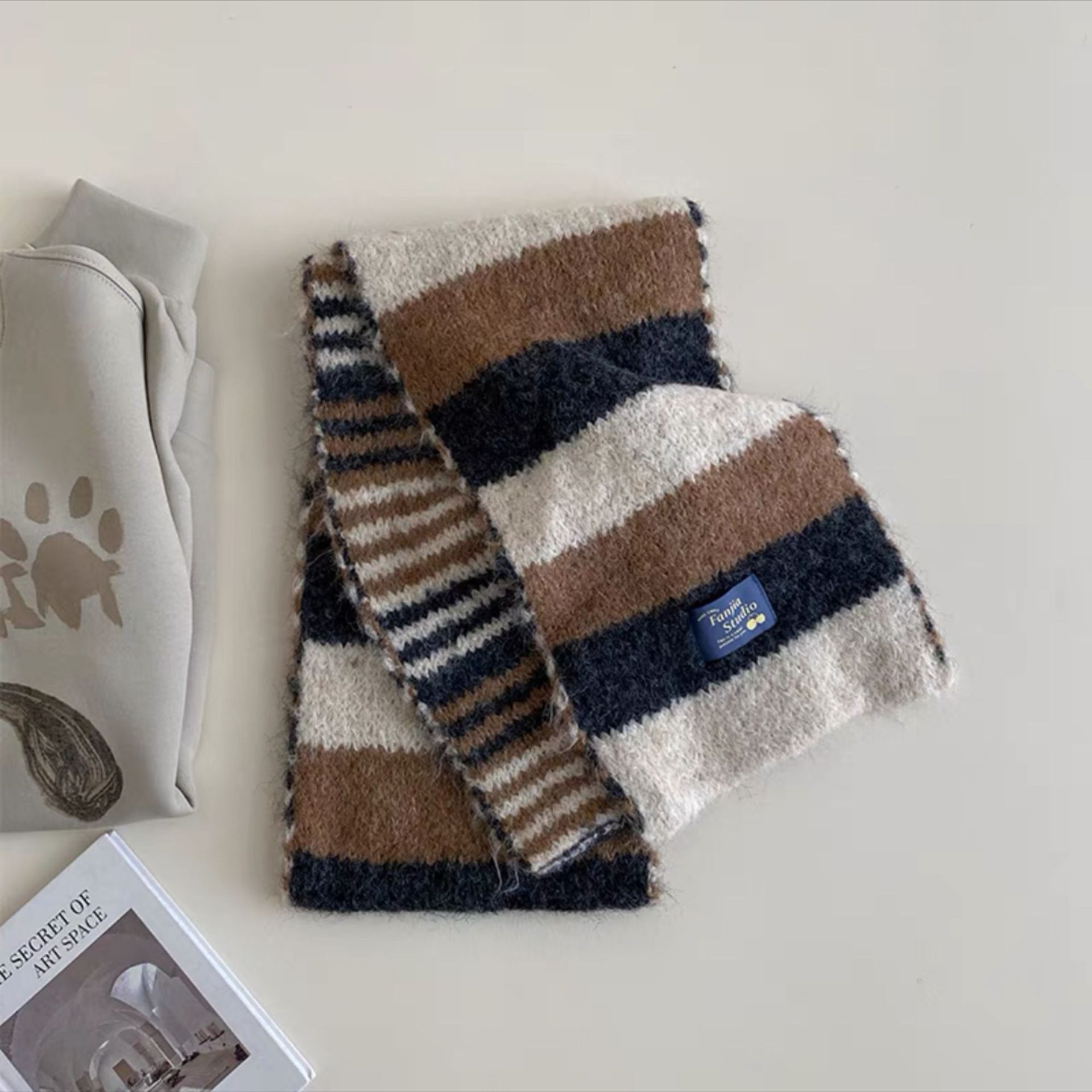 스카프 가을과 겨울 두꺼운 복고풍 스타일 대비 색상 매칭 한국 스타일 모든 매치 스카프 남성과 여성을위한 따뜻한 특수 원사 학생 스카프