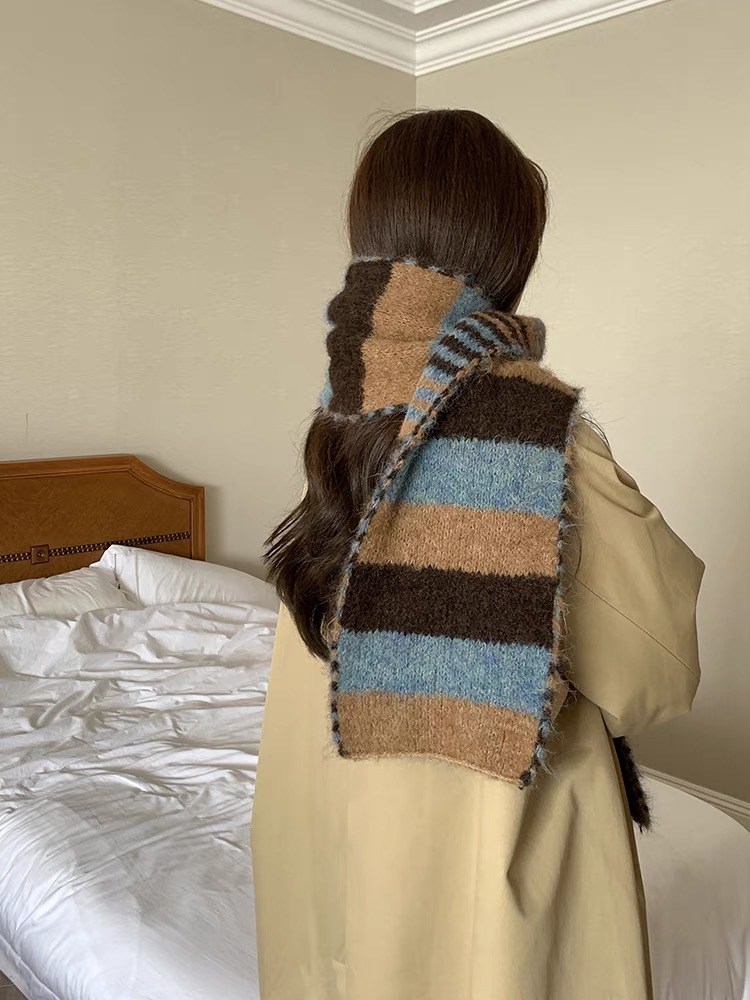 스카프 가을과 겨울 두꺼운 복고풍 스타일 대비 색상 매칭 한국 스타일 모든 매치 스카프 남성과 여성을위한 따뜻한 특수 원사 학생 스카프스토어 가기