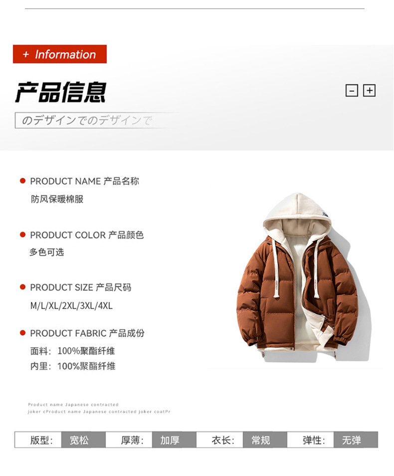 25 겨울 투피스 면옷 남성용 루즈핏 면자켓 커플용 단색 후드 두꺼운 면자켓 코트 면옷