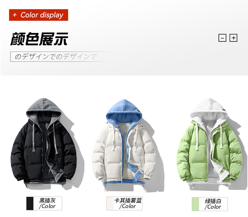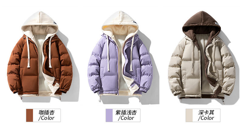 25 겨울 투피스 면옷 남성용 루즈핏 면자켓 커플용 단색 후드 두꺼운 면자켓 코트 면옷스토어 가기