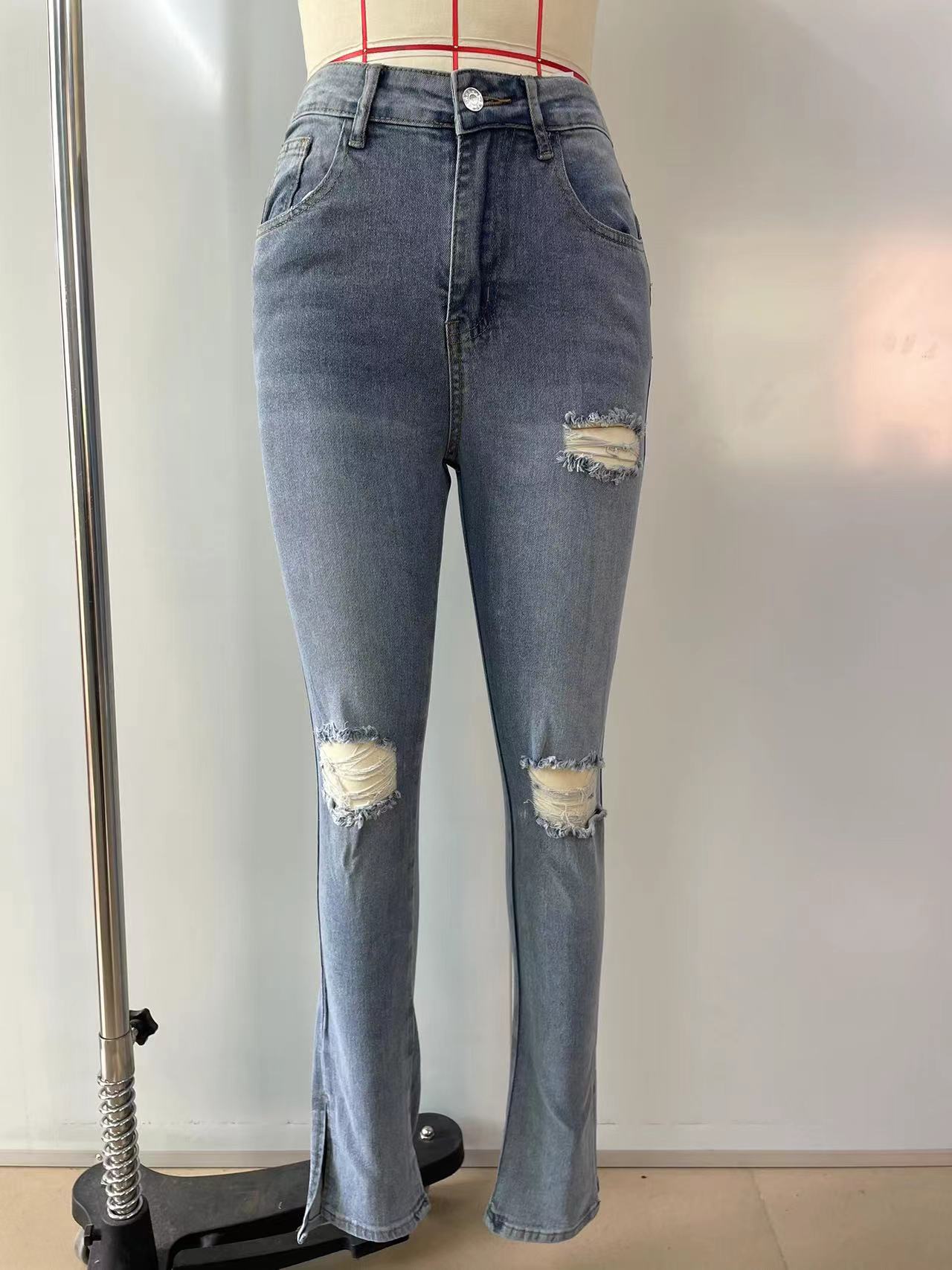 아마존 독립 역 뉴 패션 홀 풋 슬릿 슬림 스트레치 진 여성 전용 크로스 보더스토어 가기