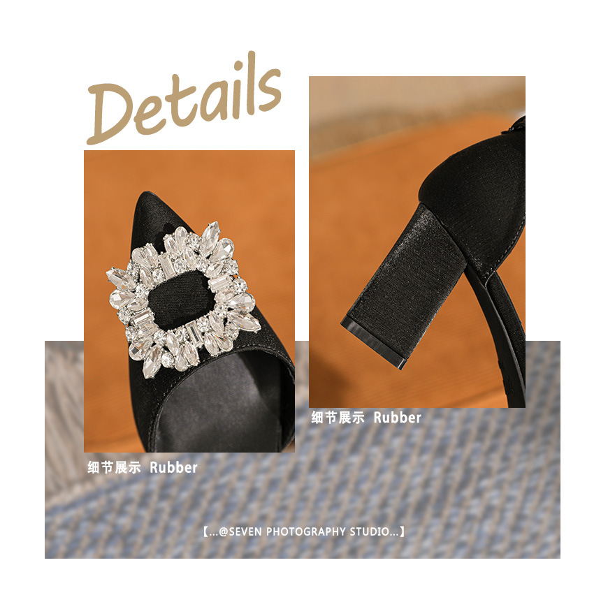 뾰족한 두꺼운 굽 하이힐 플러스 사이즈 플러스 지방 확장 웨딩 신발 웨딩 신발 신부 신발 단일 신발 버클 중공 사각 버클스토어 가기