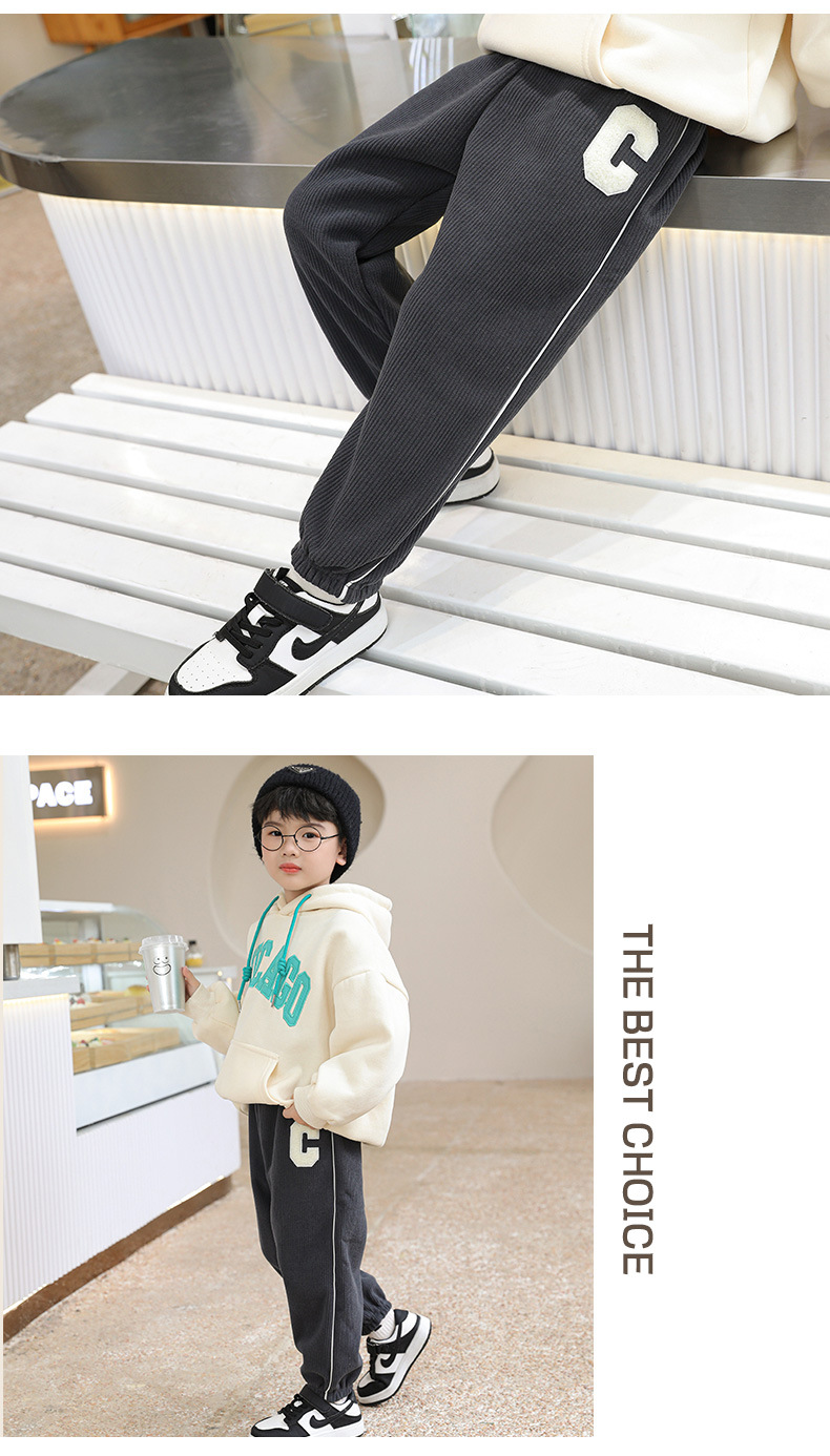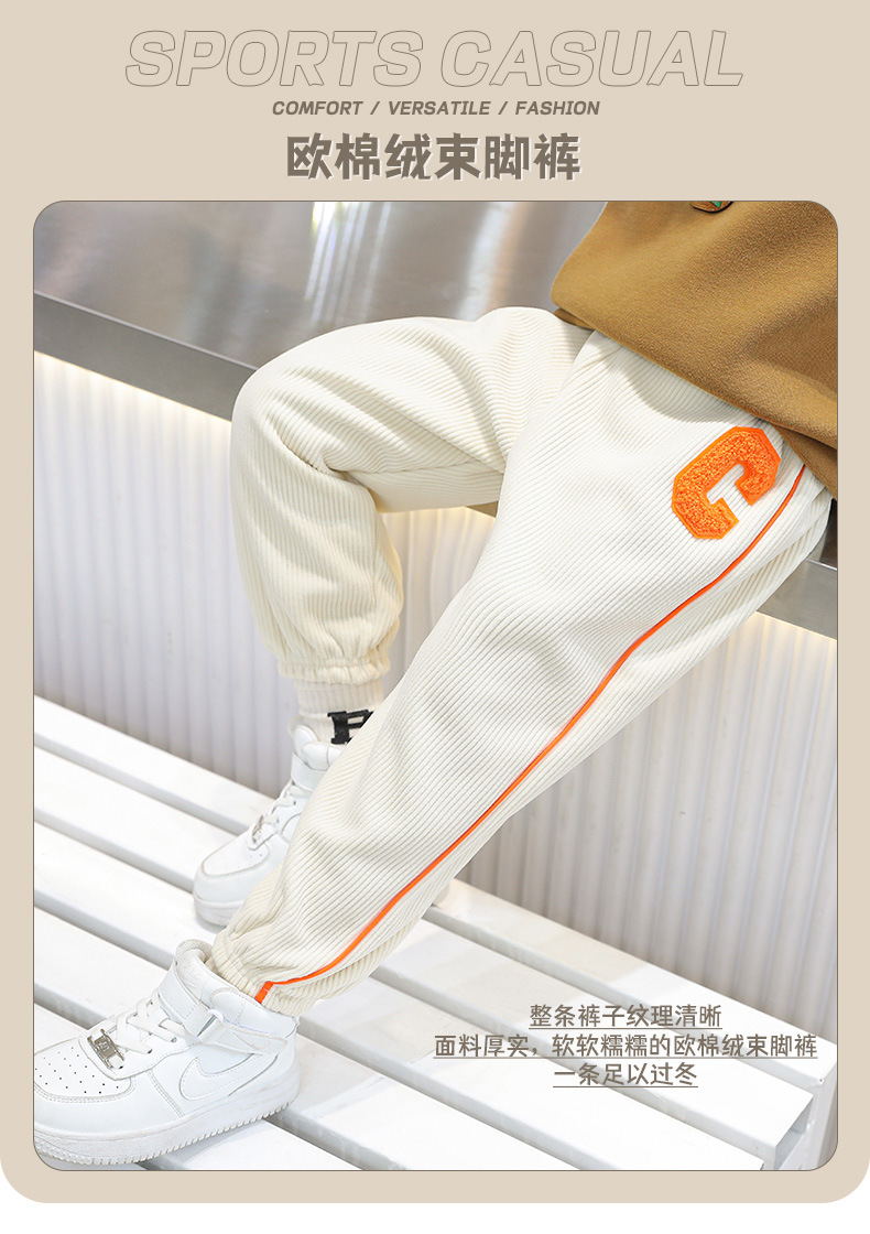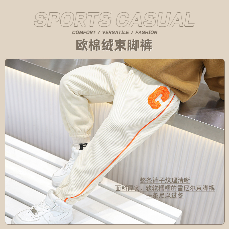 어린이 기모 두꺼운 캐주얼 바지 겨울 유럽 면 벨벳 바지 소년 소녀 가을과 겨울 부드러운 왁스 테더 스포츠 바지