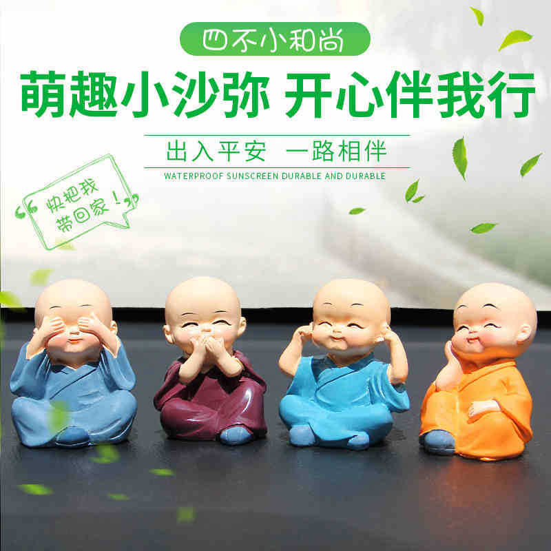 새로운 자동차 장식 창조적 인 차 네 흔들리지 않는 머리 작은 스님 귀여운 샤미 인형 자동차 실내 장식 용품스토어 가기