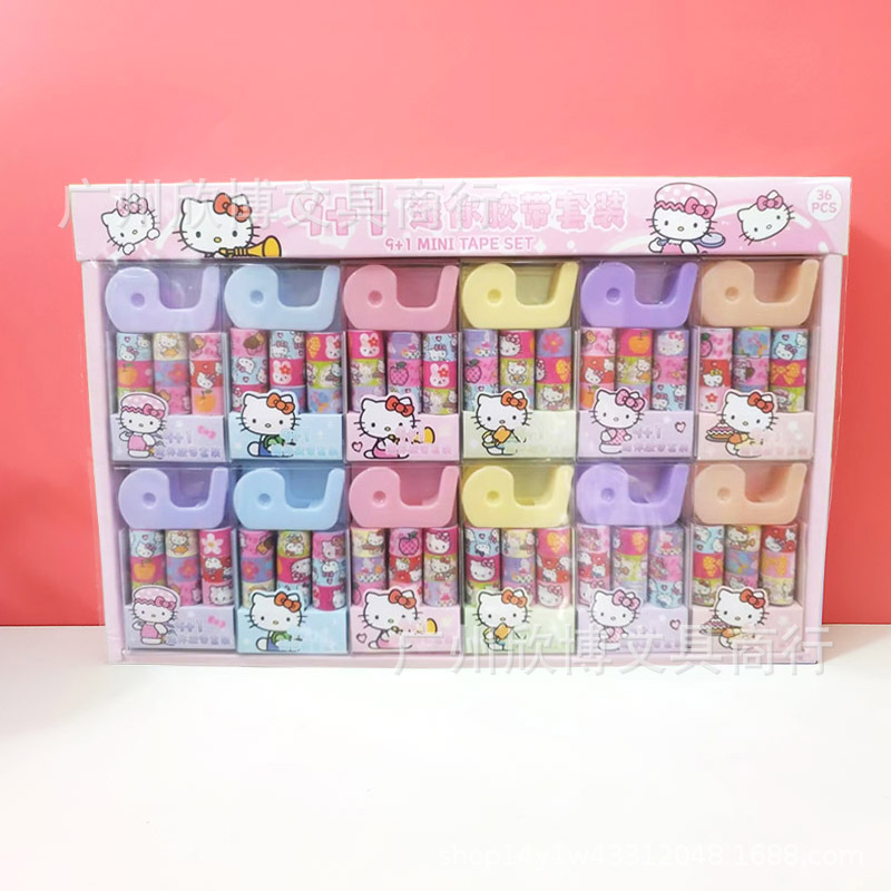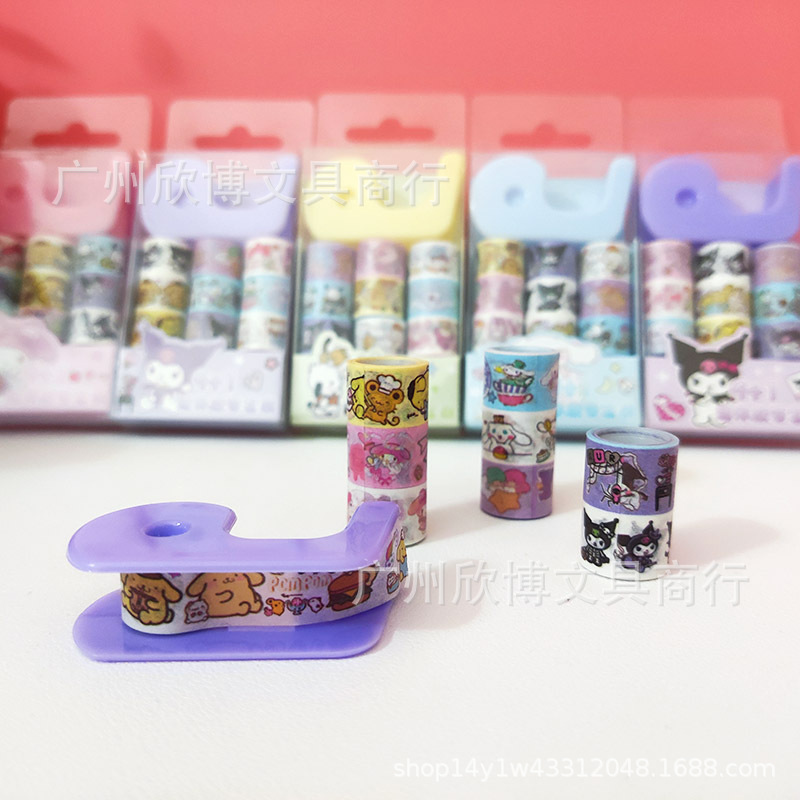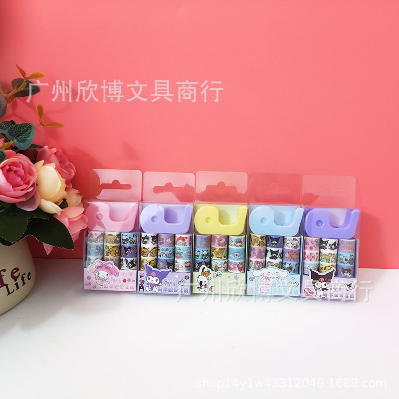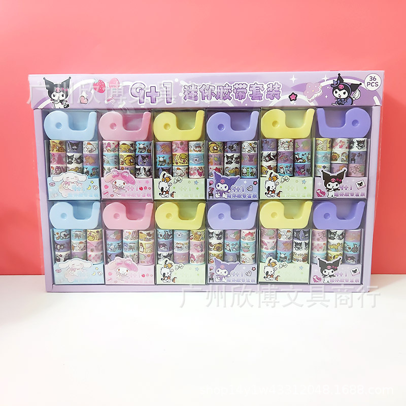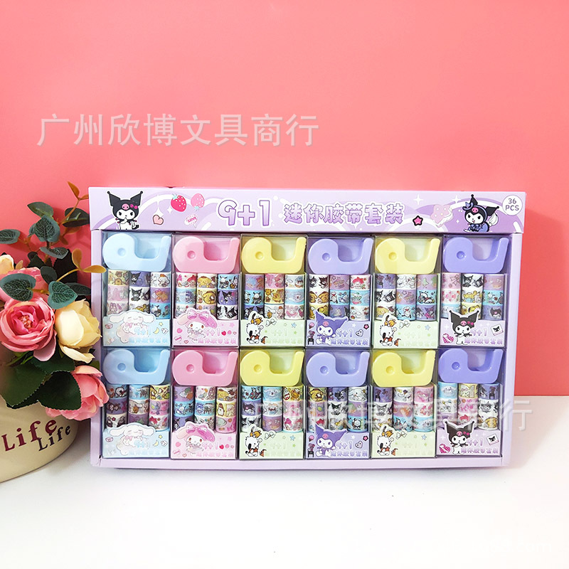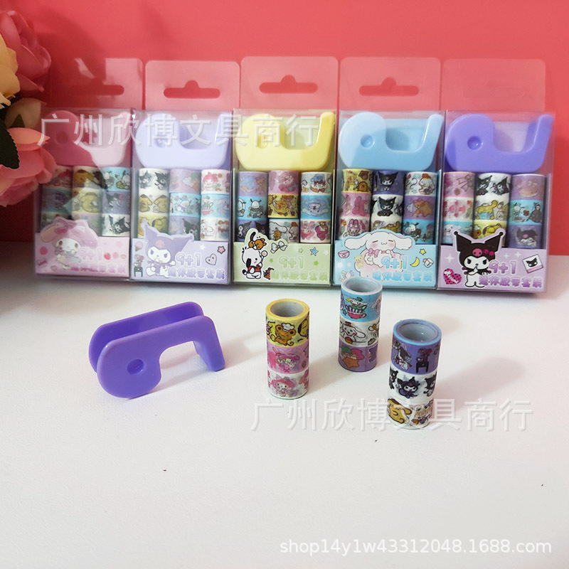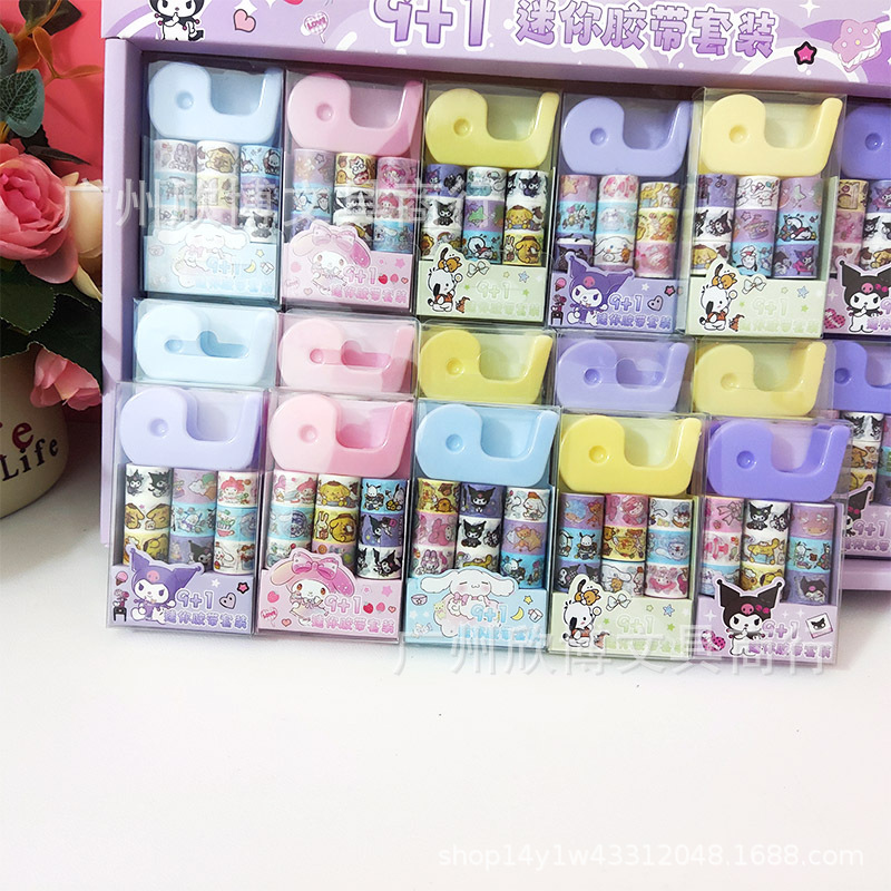 새로운 만화 산리오 9 1 미니 및 종이 테이프 세트 접착 테이프 시트 학생의 손 계정 스티커 스티커