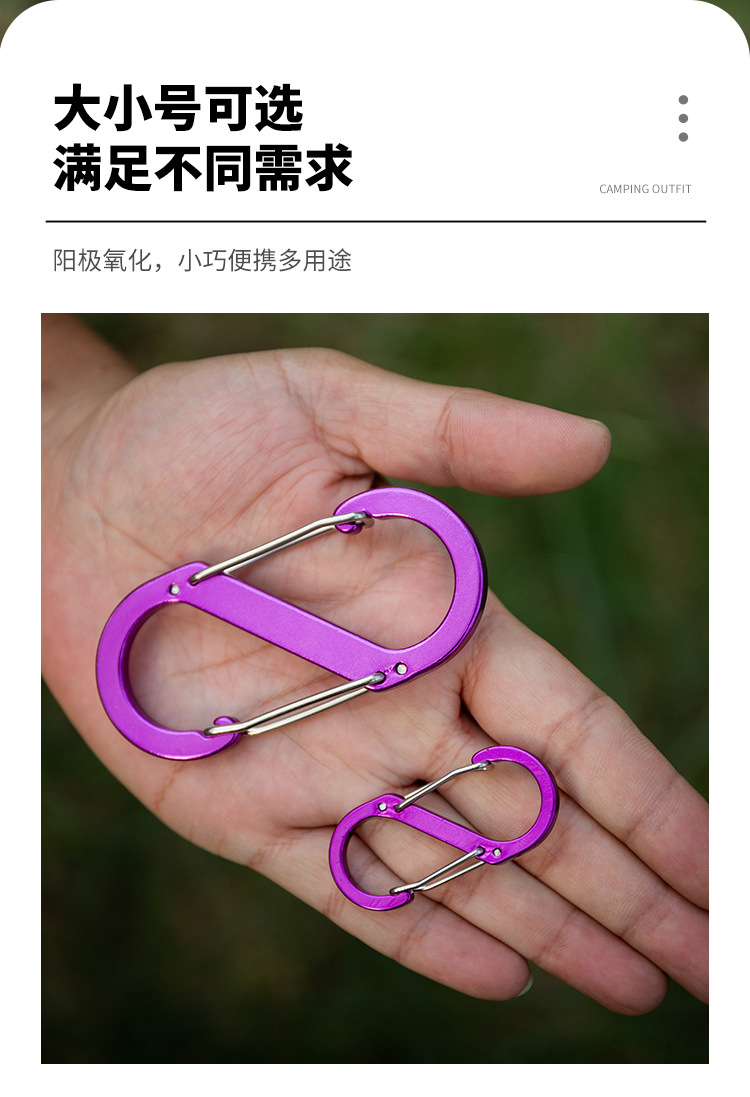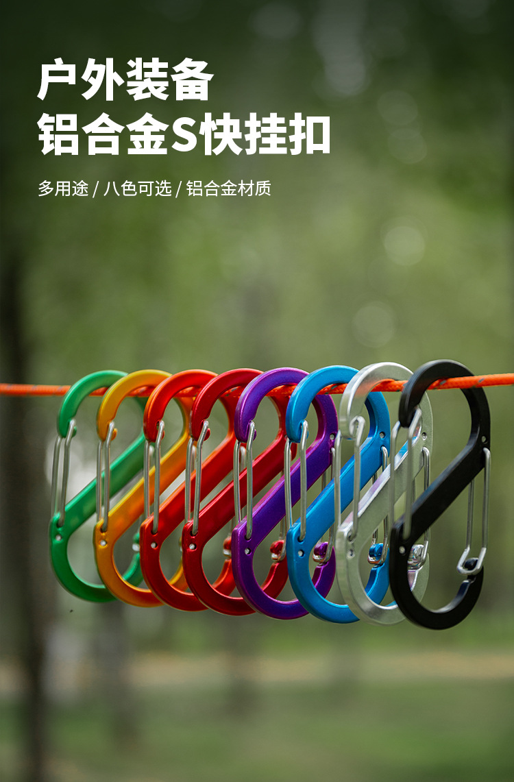야외 등산 버클 스프링 걸이 버클 알루미늄 합금 S 버클 캐노피 텐트 캠핑 안전 패스트 훅 키링 8 형 버클