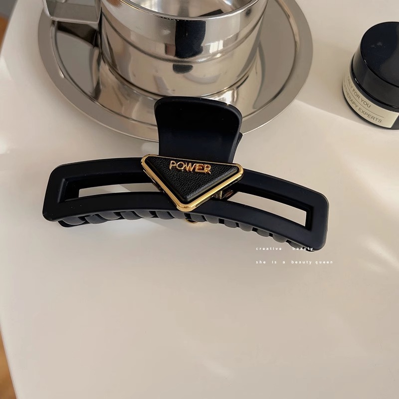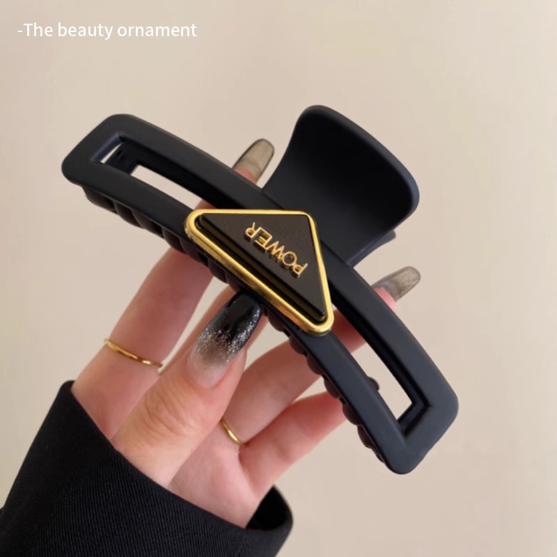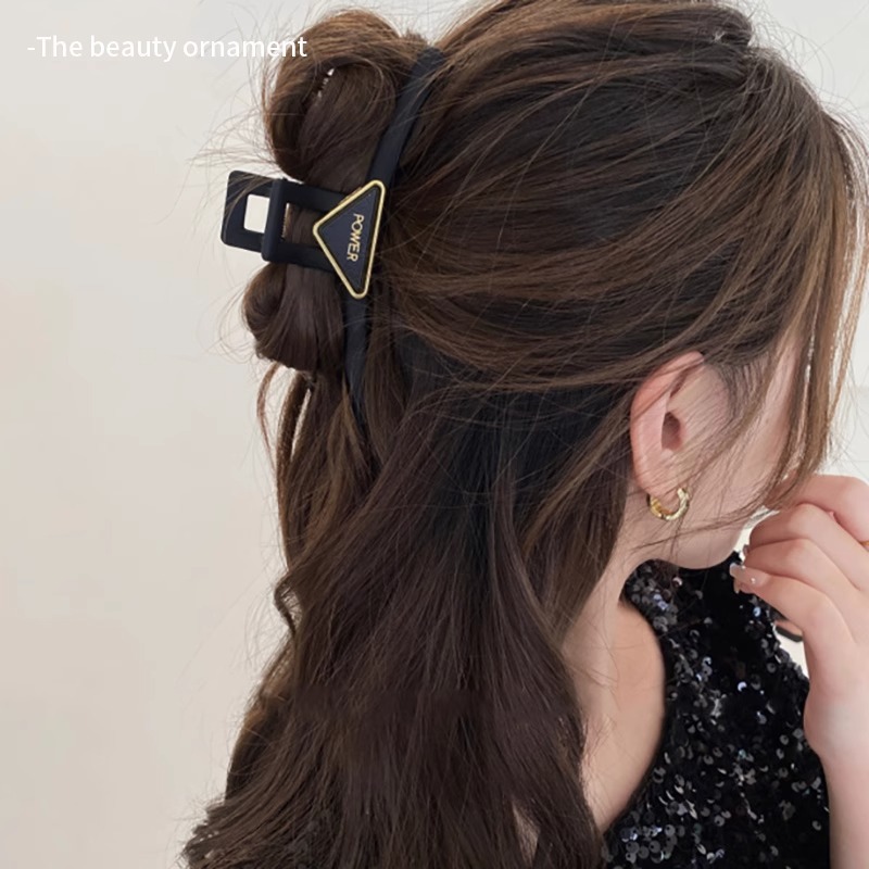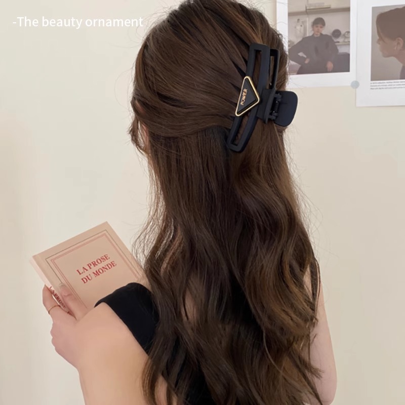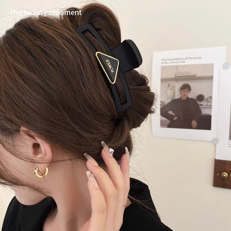 고급 감각 편지 삼각형 블랙 그랩 클립 머리핀 여자의 머리 뒤 디스크 머리 큰 상어 클립 머리핀 모자