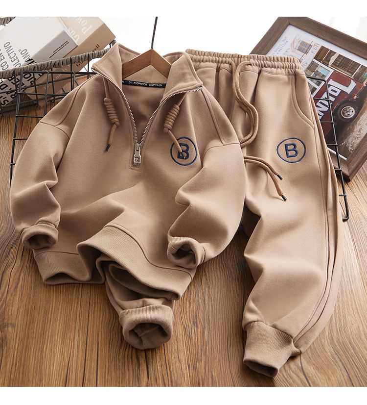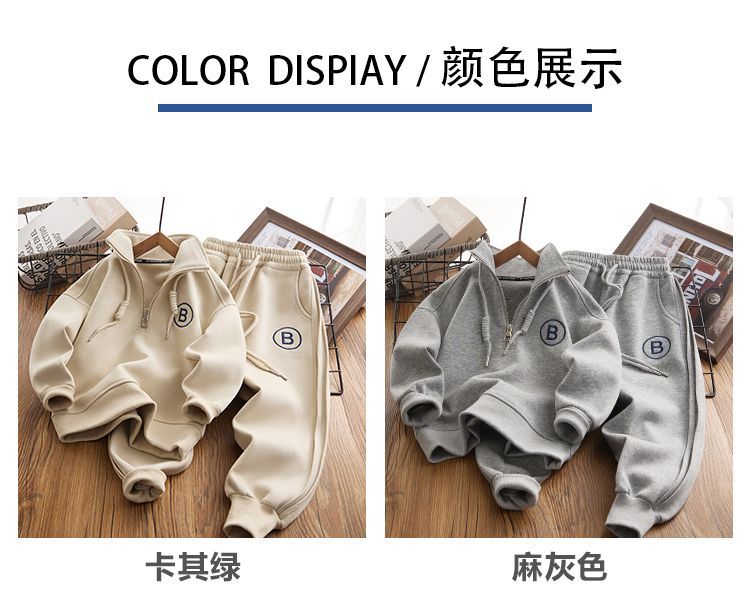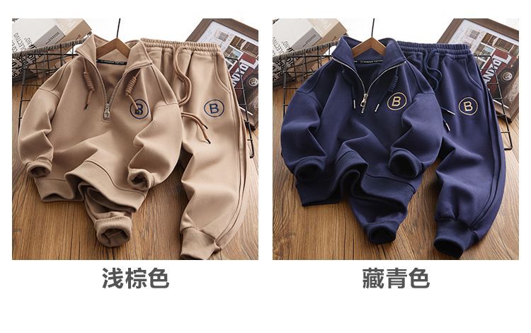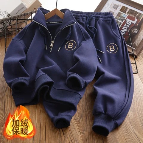어린이 운동복 스포츠 정장 2025 새로운 중대형 어린이 플러스 벨벳 스타일 소년 느슨한 옷 뚱뚱한 어린이 가을, 겨울 스타일