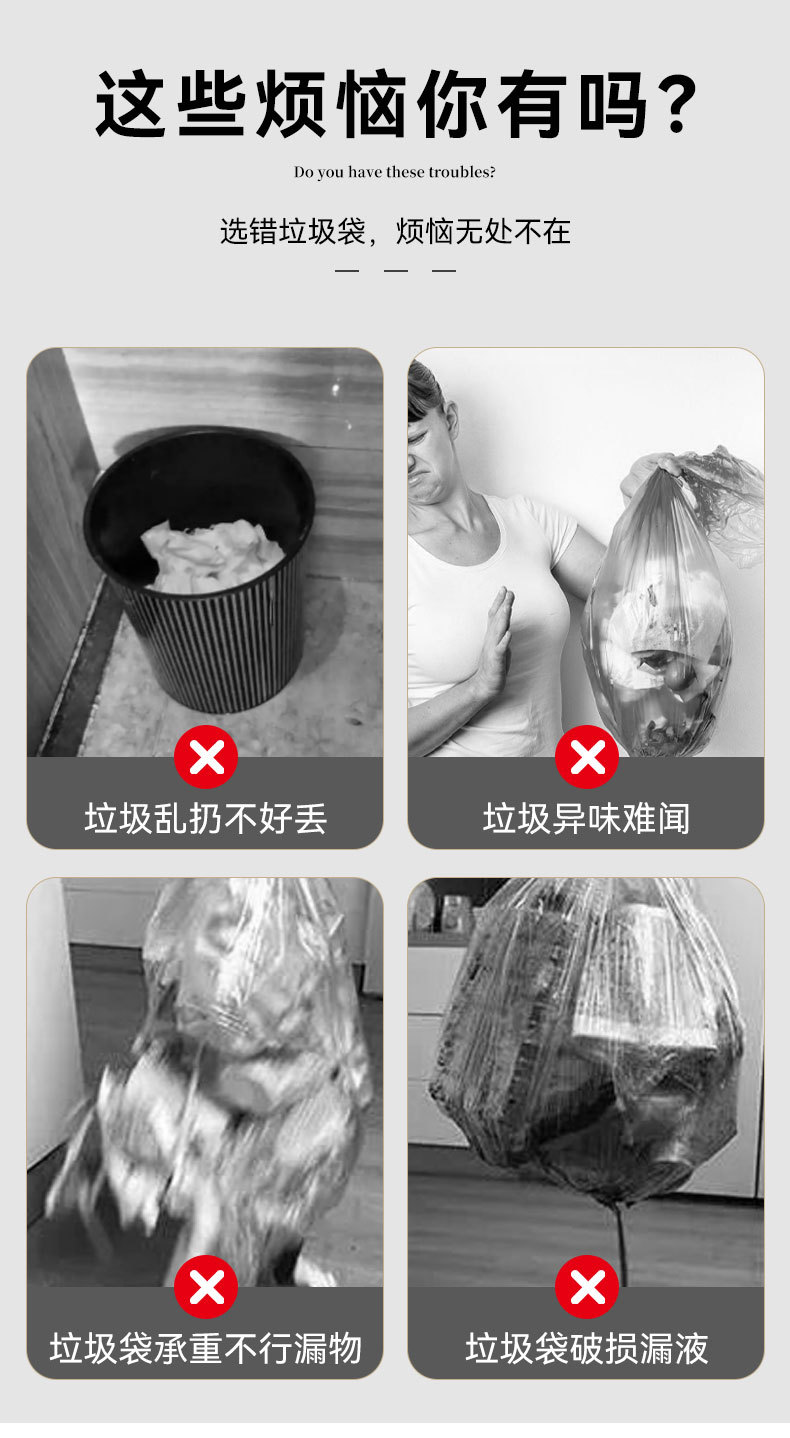 쓰레기 봉투 가정용 휴대용 두꺼운 슈퍼 두꺼운 주방 특수 졸라매는 끈 저비용 찢어짐 대형 비닐 봉투