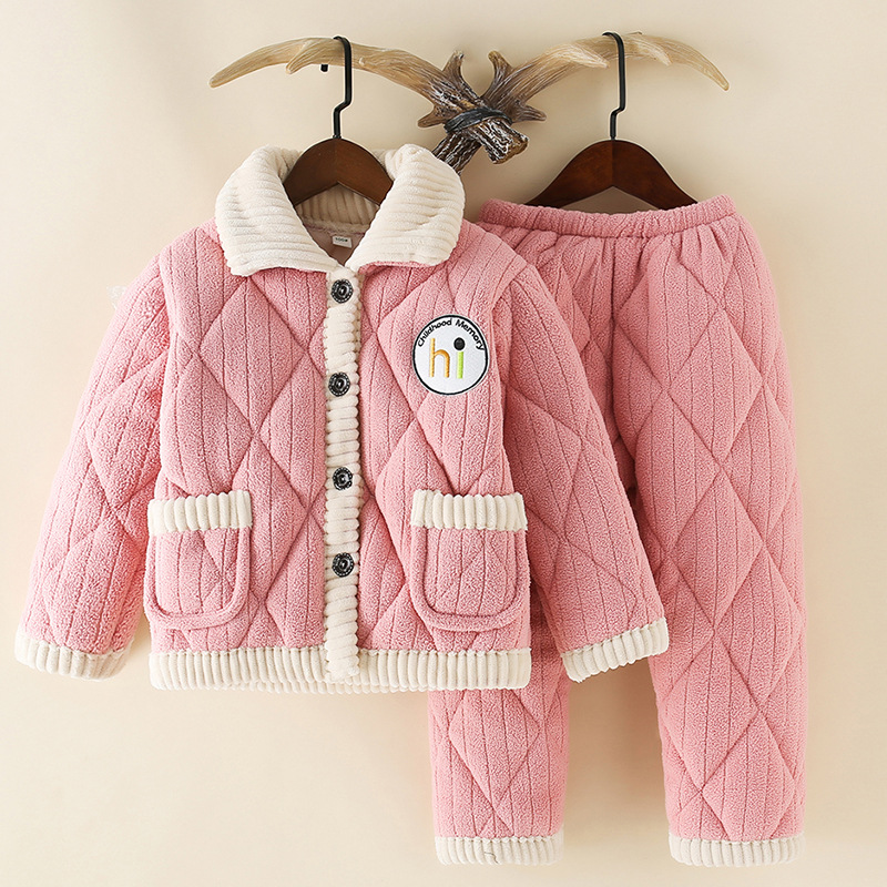 어린이 겨울 퀼트 잠옷 소년 큰 아이들 따뜻한 3 층 퀼트 가정 옷 세트 머리카락 세대