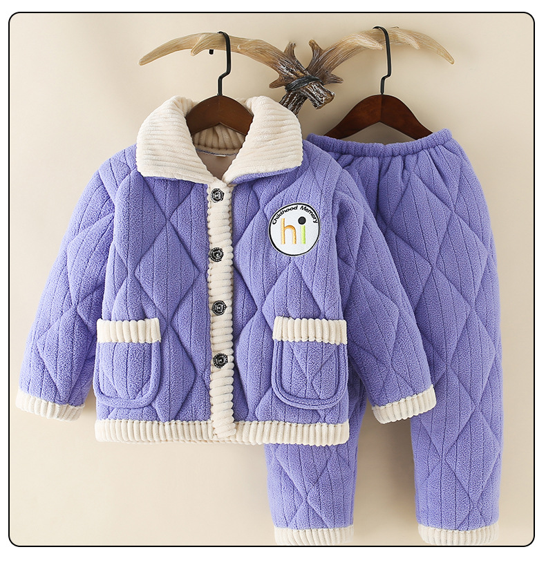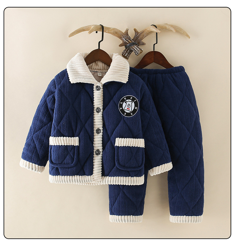 어린이 겨울 퀼트 잠옷 소년 큰 아이들 따뜻한 3 층 퀼트 가정 옷 세트 머리카락 세대스토어 가기
