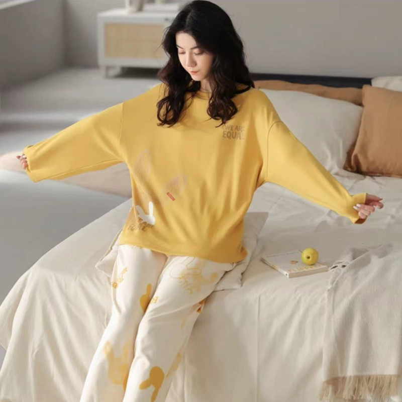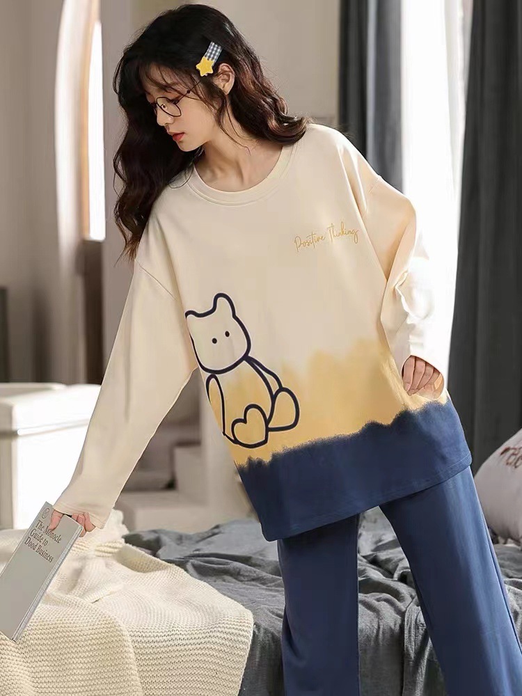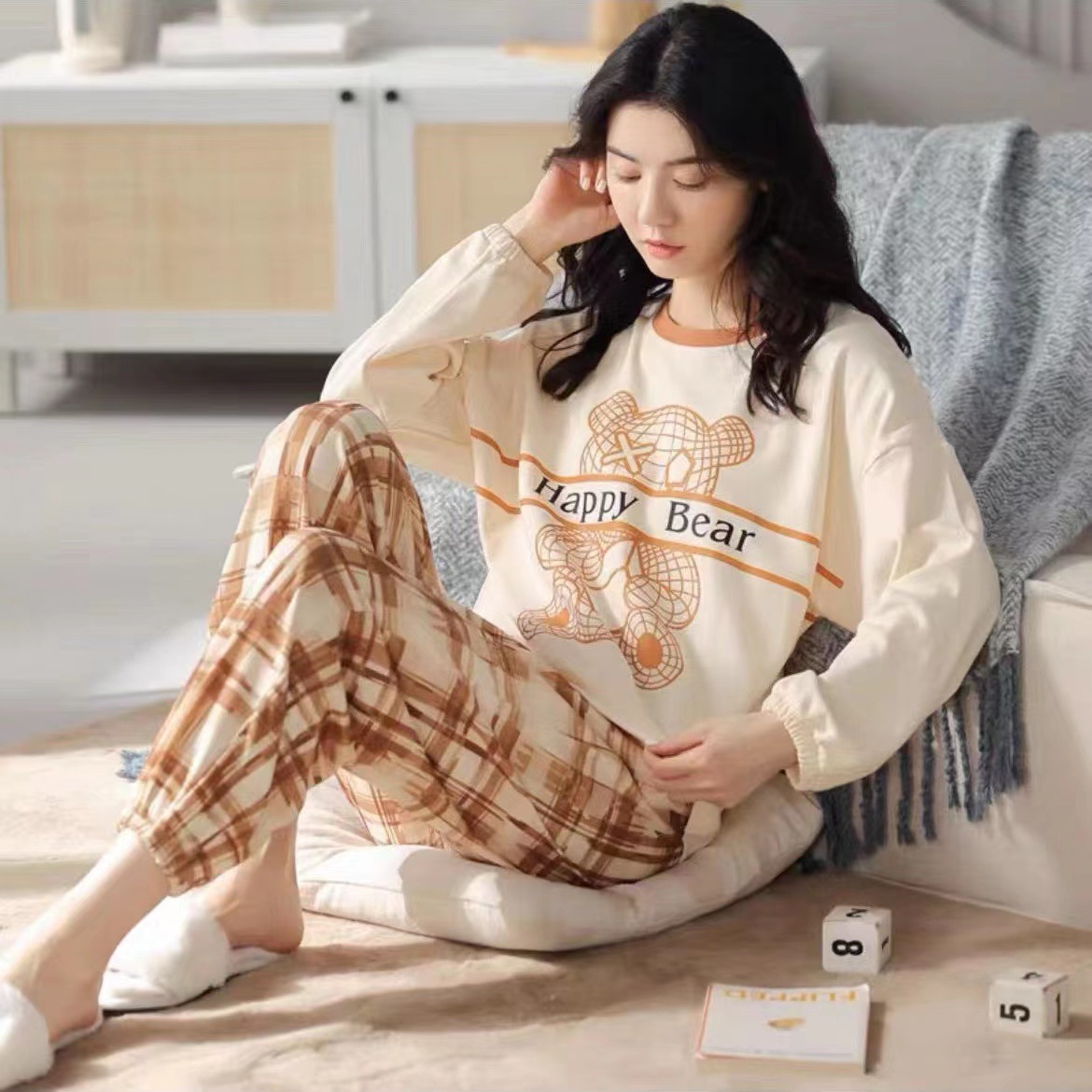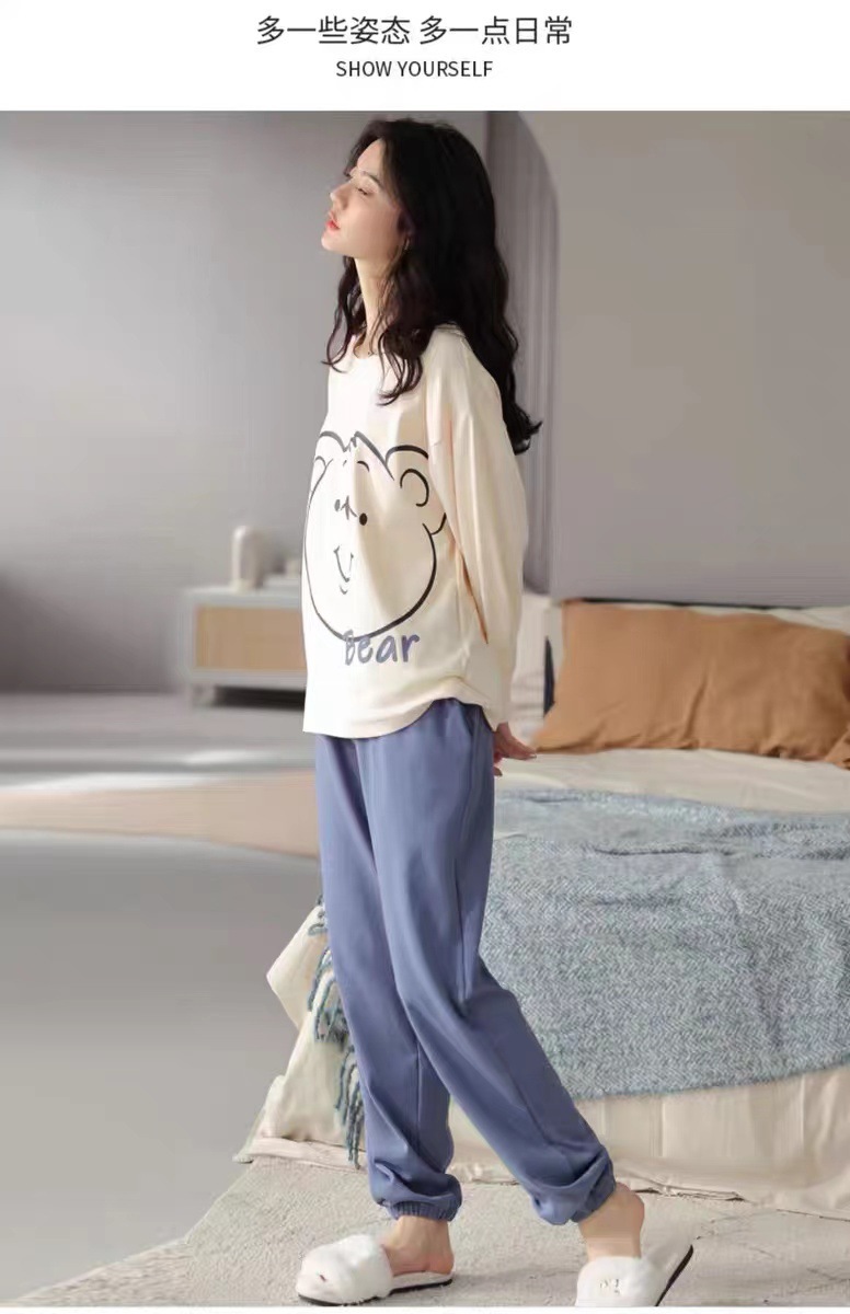 睡衣女春秋款长袖仿棉套装2023年新款学生ins风秋冬季宽松家居服스토어 가기