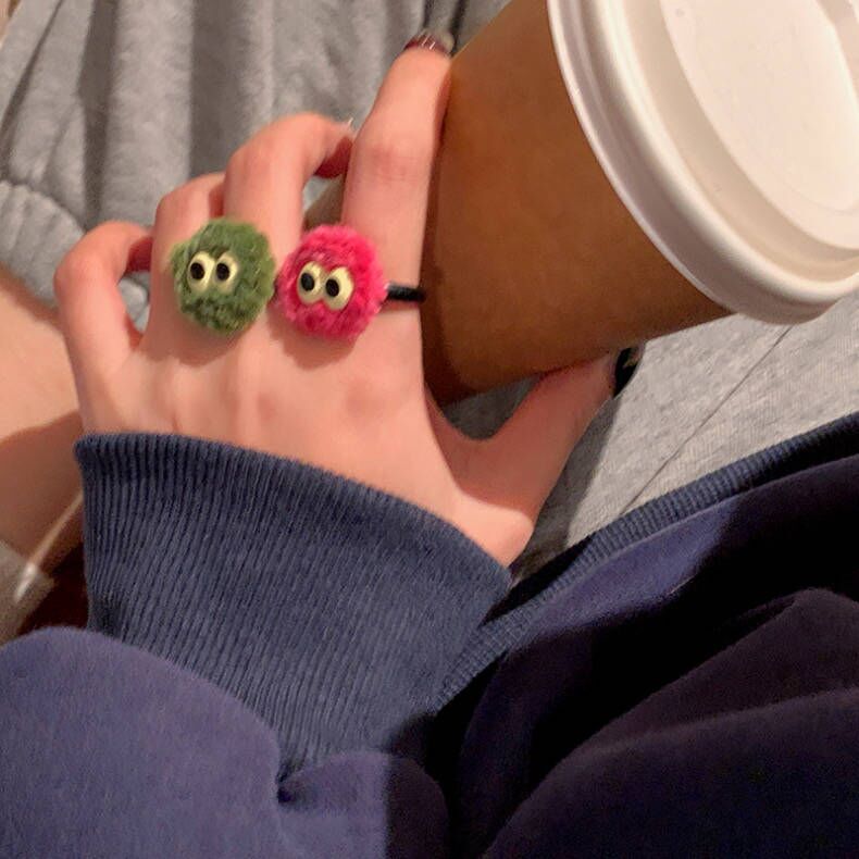 귀여운 작은 석탄 공 봉제 반지 여자의 가을과 겨울 틈새 디자인 감각 만화 재미있는 손가락 반지 패션 개인화 된 반지