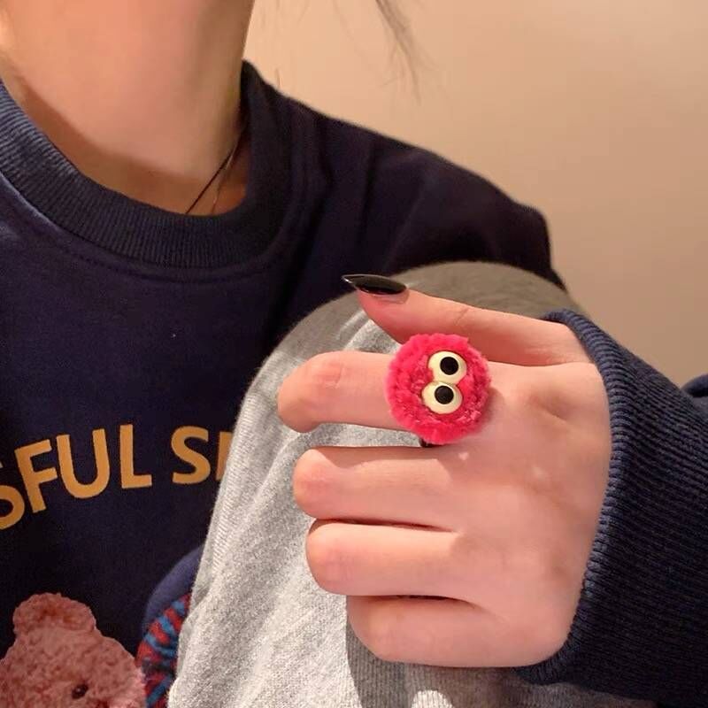 귀여운 작은 석탄 공 봉제 반지 여자의 가을과 겨울 틈새 디자인 감각 만화 재미있는 손가락 반지 패션 개인화 된 반지스토어 가기