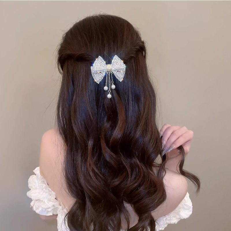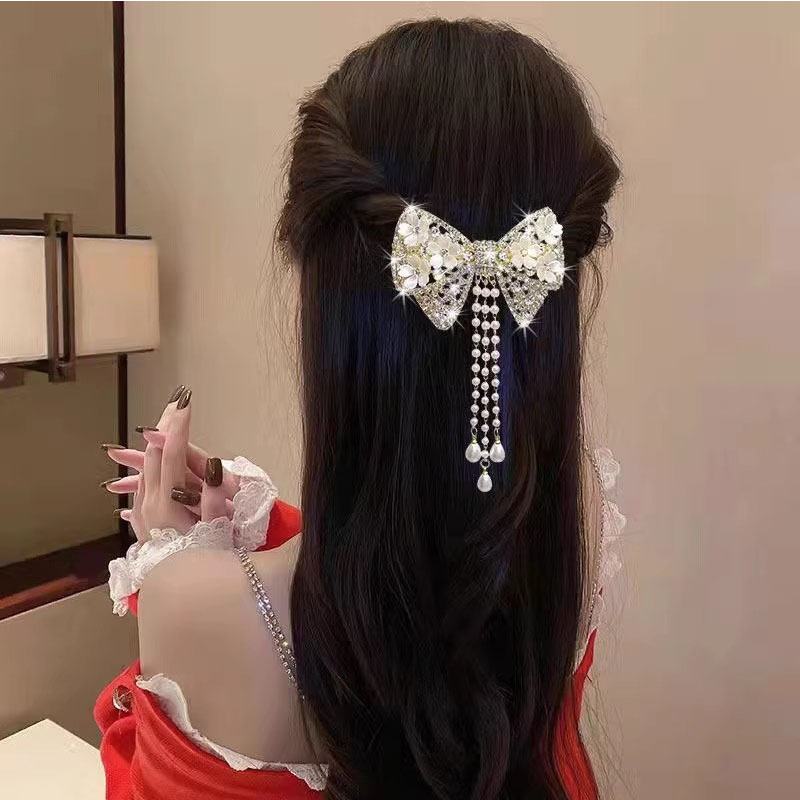 나비 리본과 진주 장식의 머리핀, 소녀들을 위한 뒷머리 반클립 스프링 헤어핀, 장미꽃 모양의 고급스러운 헤어핀스토어 가기