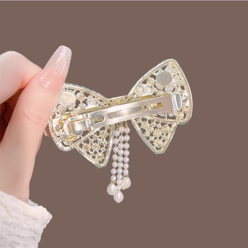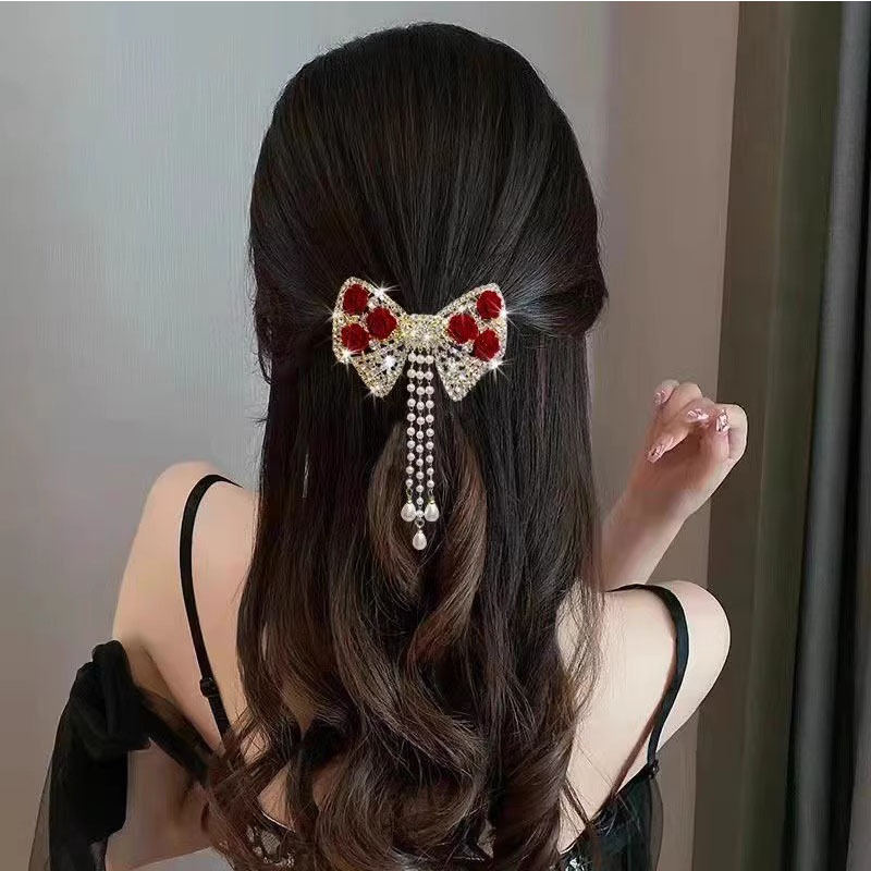 나비 리본과 진주 장식의 머리핀, 소녀들을 위한 뒷머리 반클립 스프링 헤어핀, 장미꽃 모양의 고급스러운 헤어핀