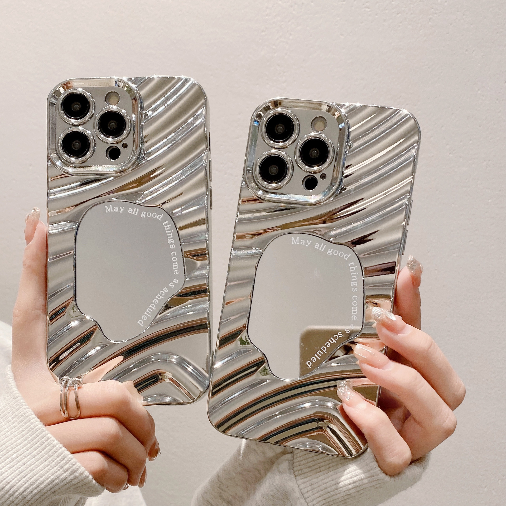애플 16/14pro 워터 웨이브 전기 도금 미러 풀커버 아이폰15/16 휴대폰 케이스에 적합