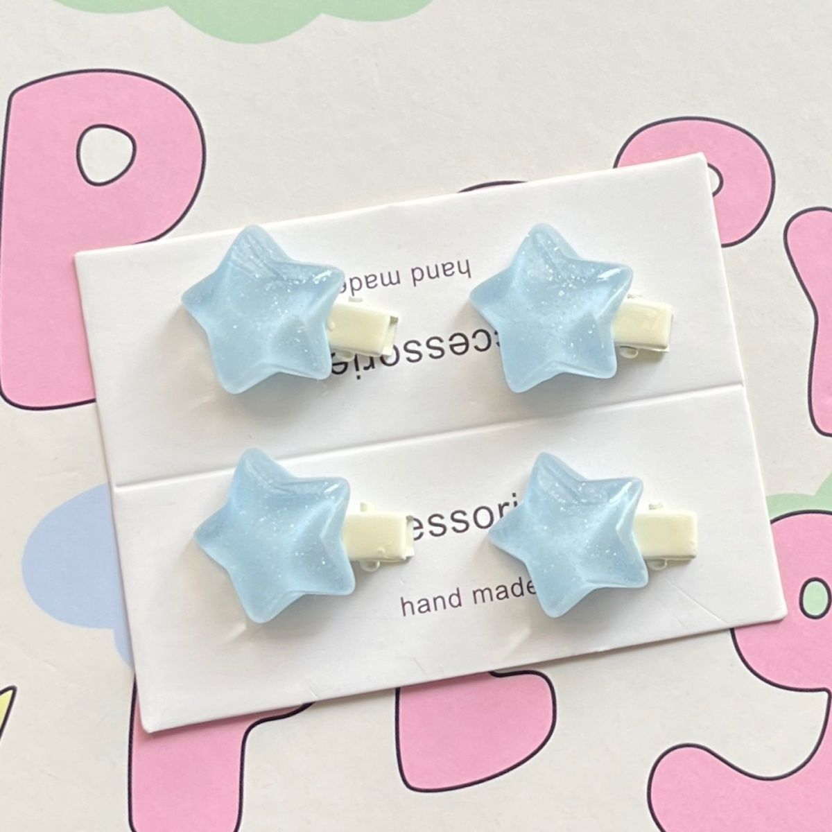 스타 헤어 핀 스위트 소녀 젤리 파인 플래시 미니 5 점 스타 헤어 액세서리 바다 소금 블루 학생 헤드 도파민 쥬얼리스토어 가기