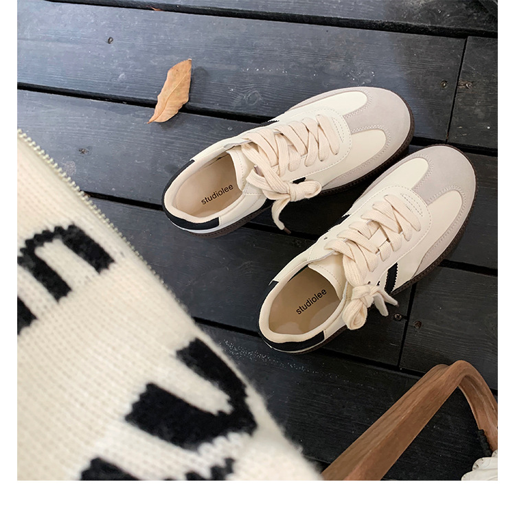 가죽! Desun 신발 여성의 세련된 가을과 겨울 2023 새로운 복고풍 다목적 두꺼운 밑창 캐주얼 스포츠 신발 신발스토어 가기
