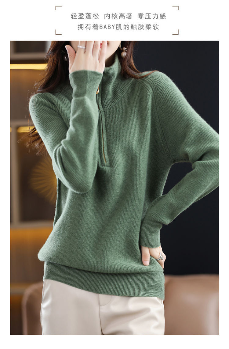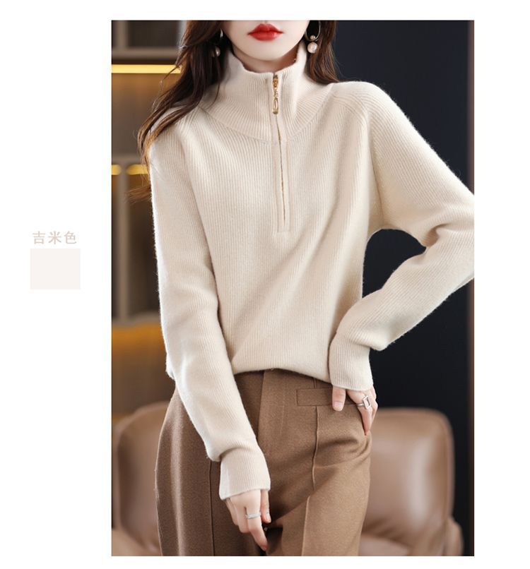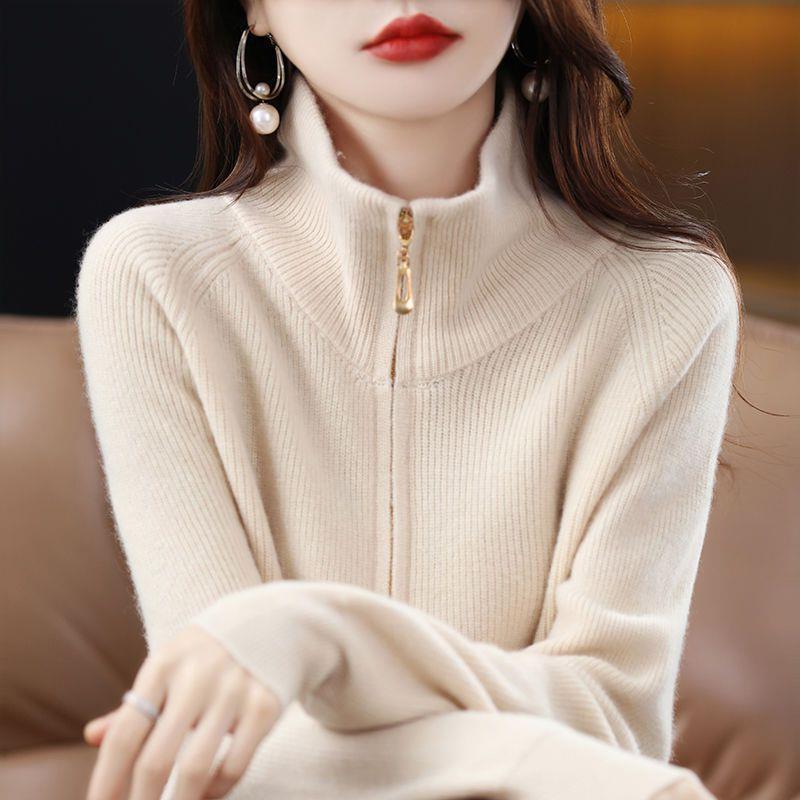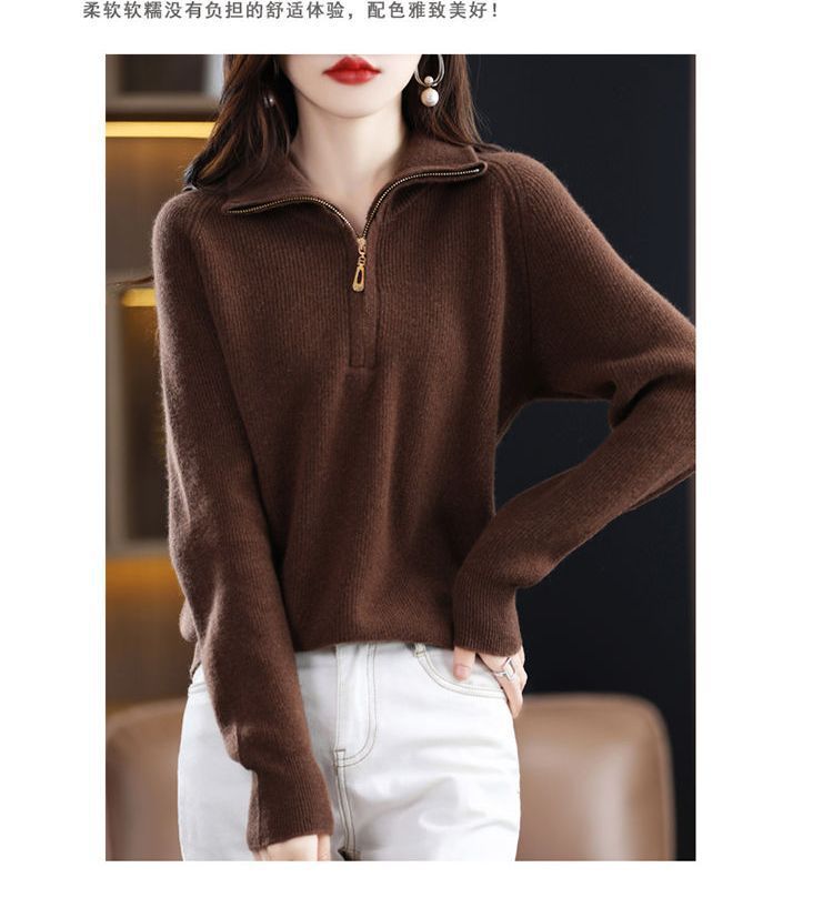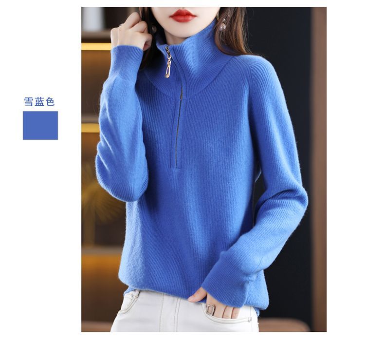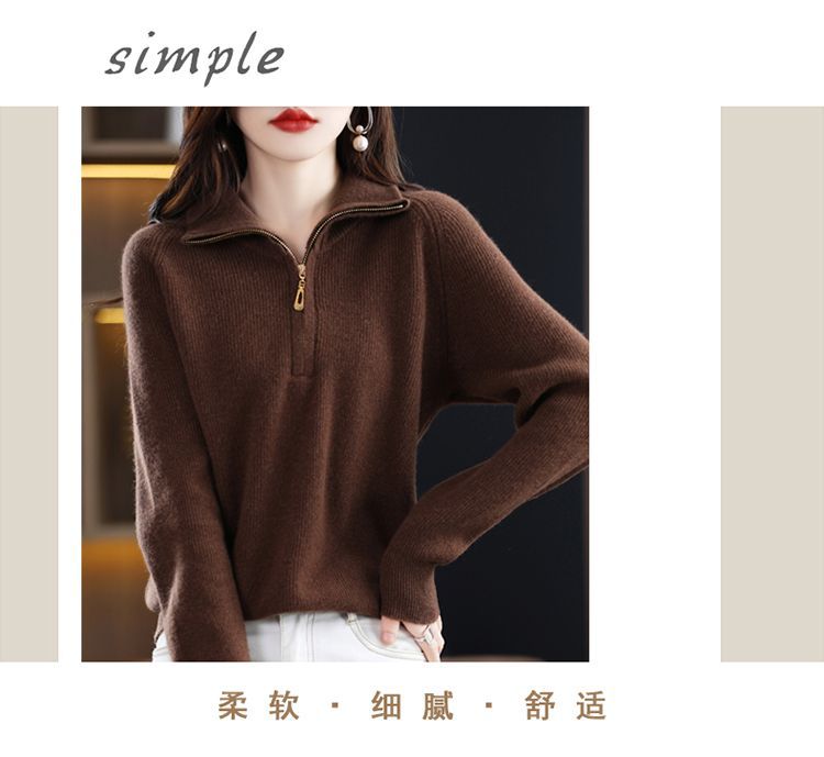 【양롱세가】캐시미어 여성용 가을 폴로넥 스웨터 루즈핏 대형 사이즈 스웨트셔츠 안감에 두꺼운 울 소재