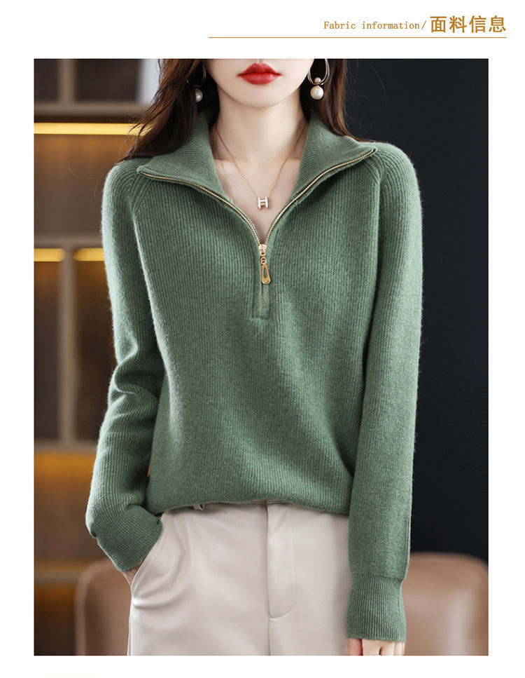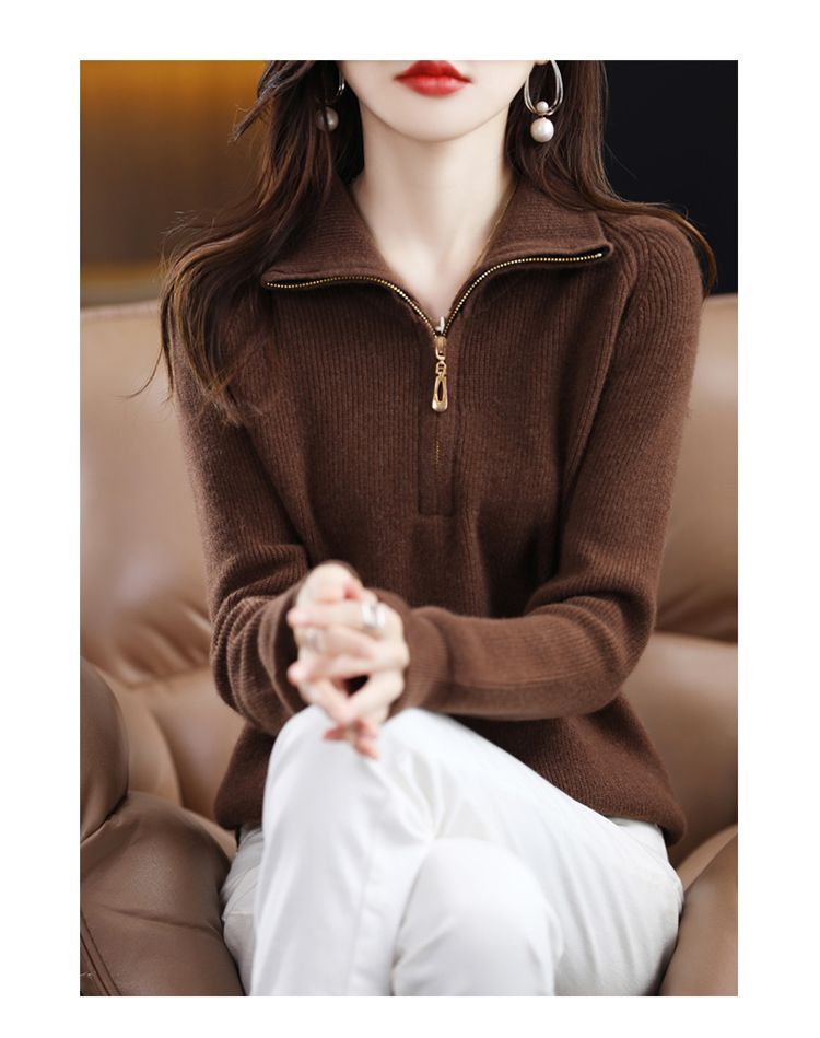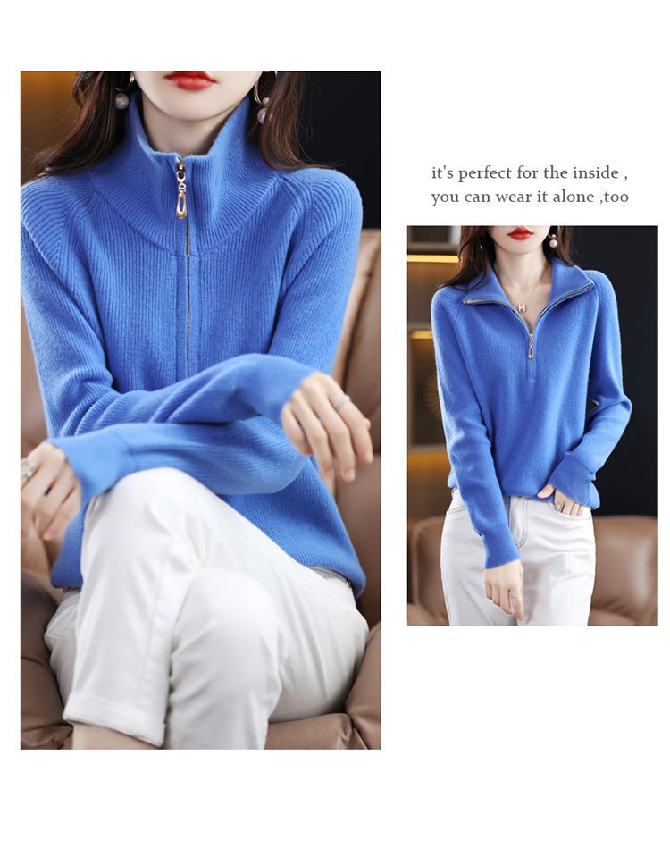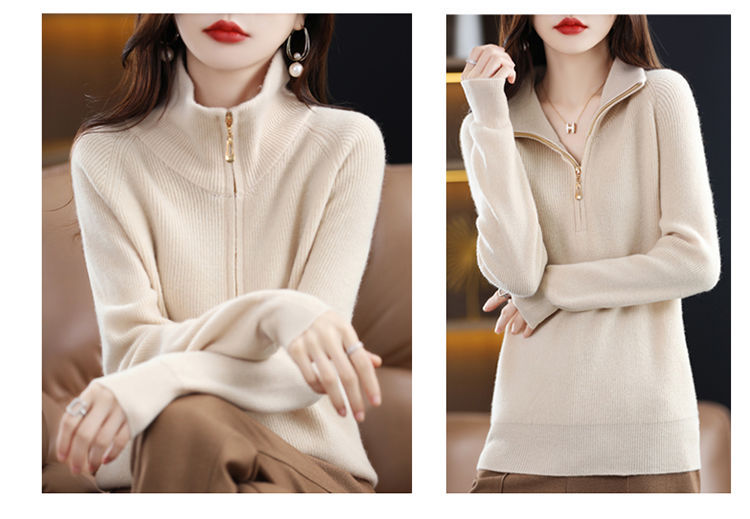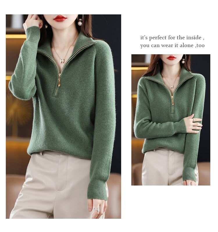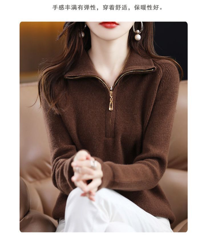 【양롱세가】캐시미어 여성용 가을 폴로넥 스웨터 루즈핏 대형 사이즈 스웨트셔츠 안감에 두꺼운 울 소재