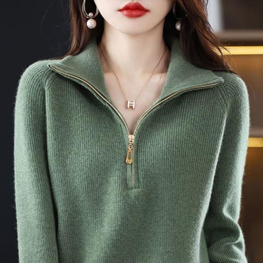 【양롱세가】캐시미어 여성용 가을 폴로넥 스웨터 루즈핏 대형 사이즈 스웨트셔츠 안감에 두꺼운 울 소재스토어 가기