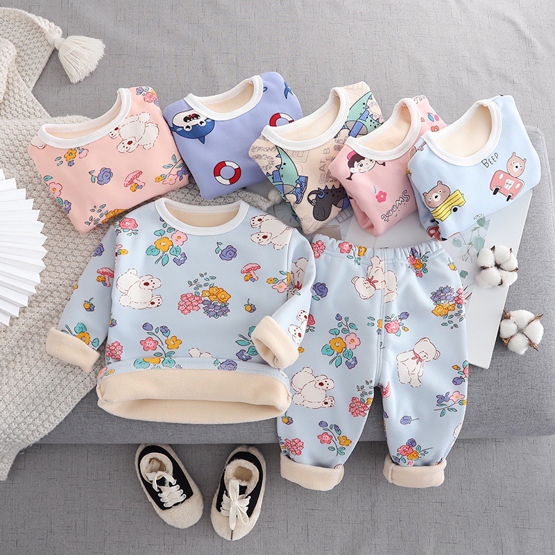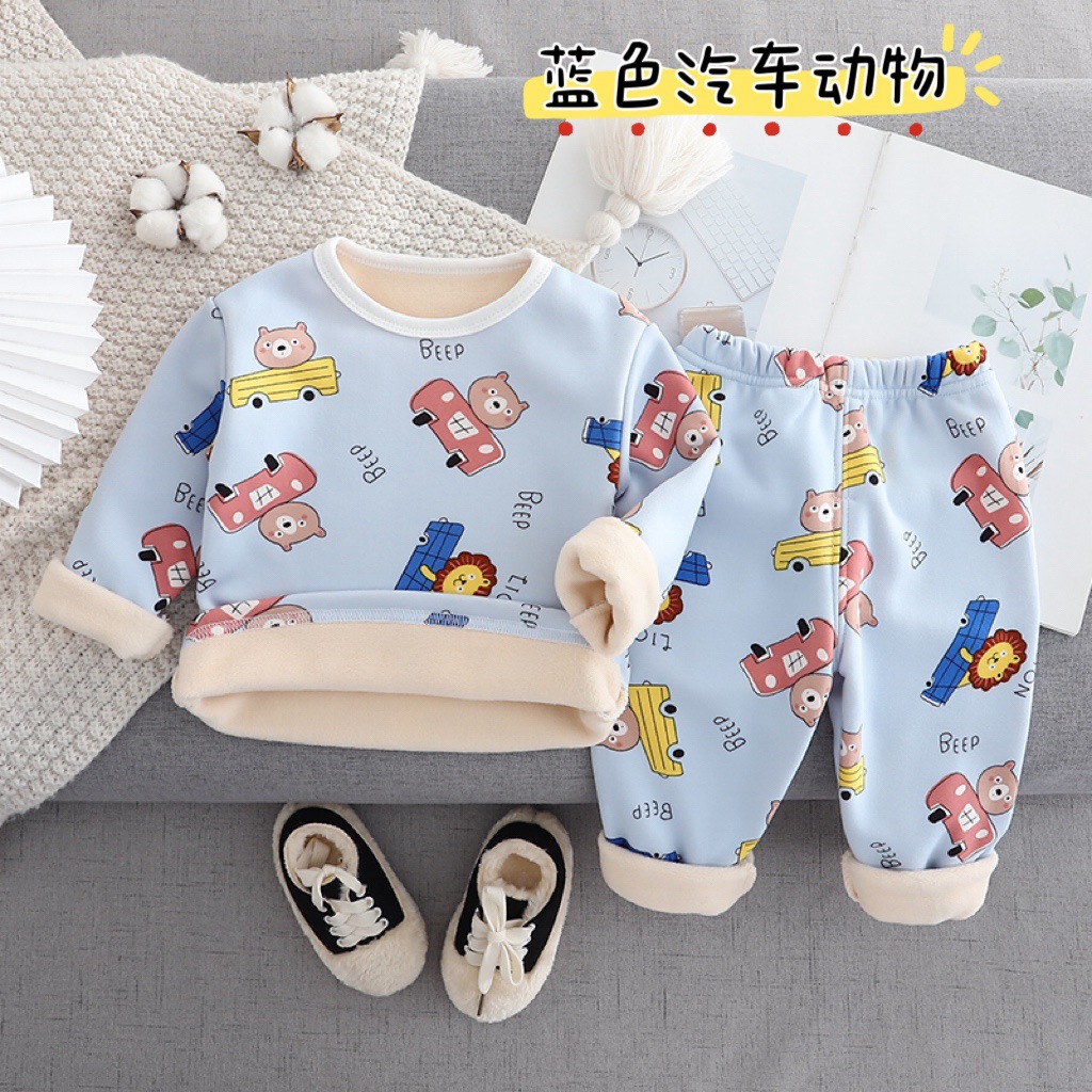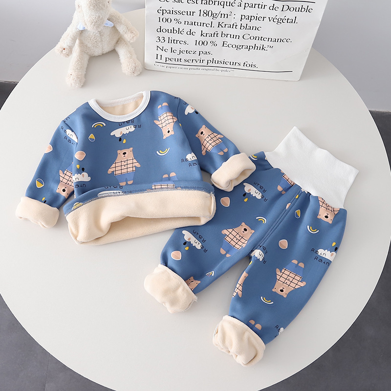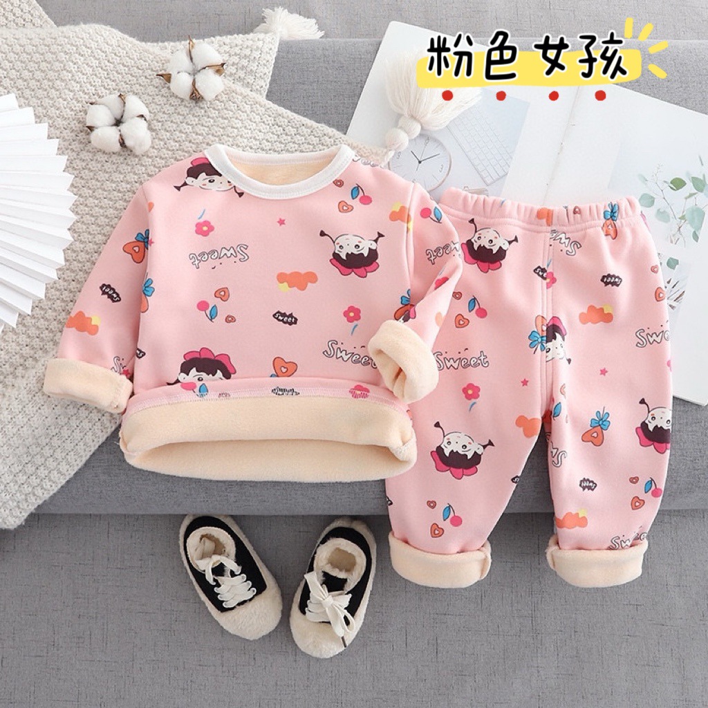 무료 배송 어린이 열 속옷 세트 아기 겨울 만화 귀여운 기모 가정 옷 두꺼운 두 조각 세트스토어 가기