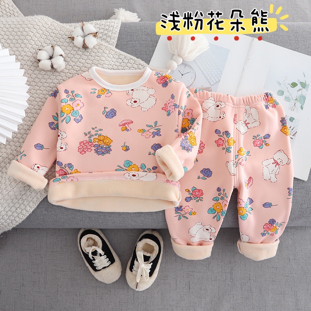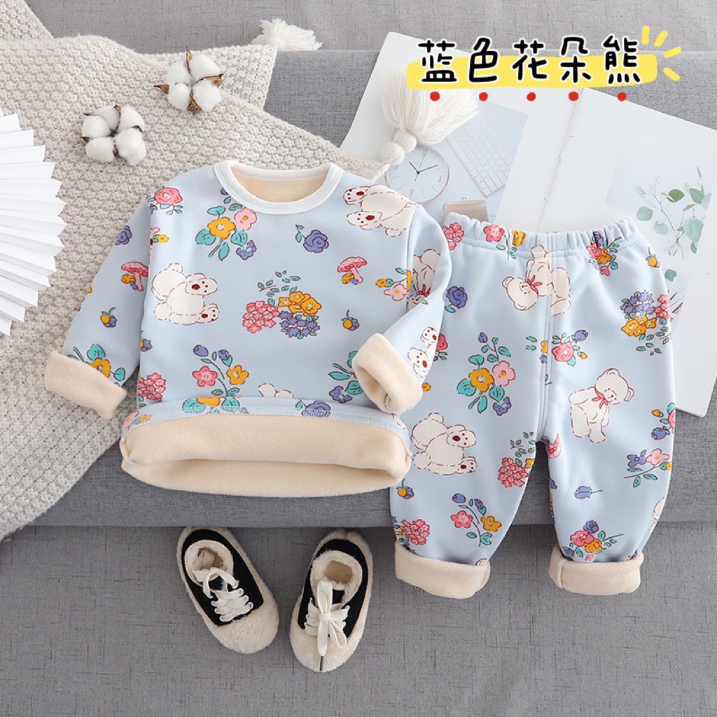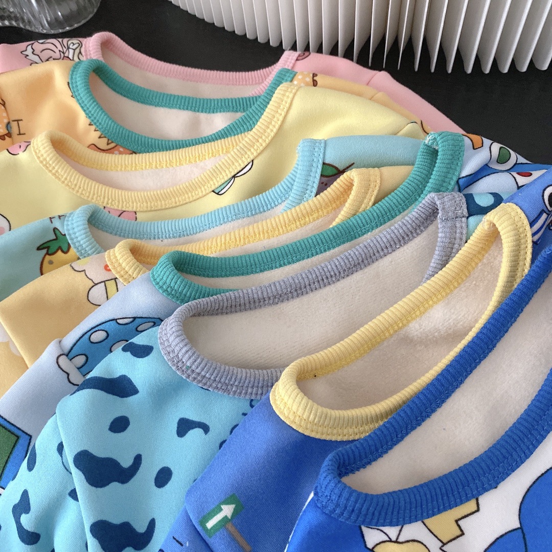 무료 배송 어린이 열 속옷 세트 아기 겨울 만화 귀여운 기모 가정 옷 두꺼운 두 조각 세트스토어 가기